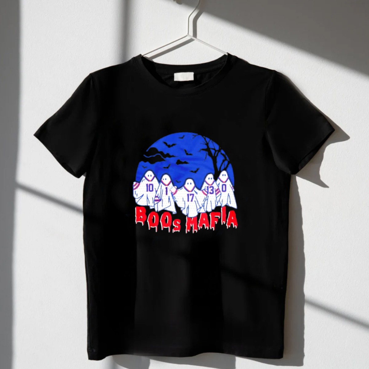 Celebrate your love for the Buffalo Bills this Halloween with our Boos Mafia T-shirt! Perfect for die-hard fans and casual wearers alike, this shirt features a fun, ghostly design that pays homage to your favorite jersey players. Whether you’re heading to a game, a themed event, or just enjoying a casual day out, this shirt is sure to make a statement and show off your team spirit in a unique way. Plus, it’s printed right here in the USA, ensuring quality and originality.