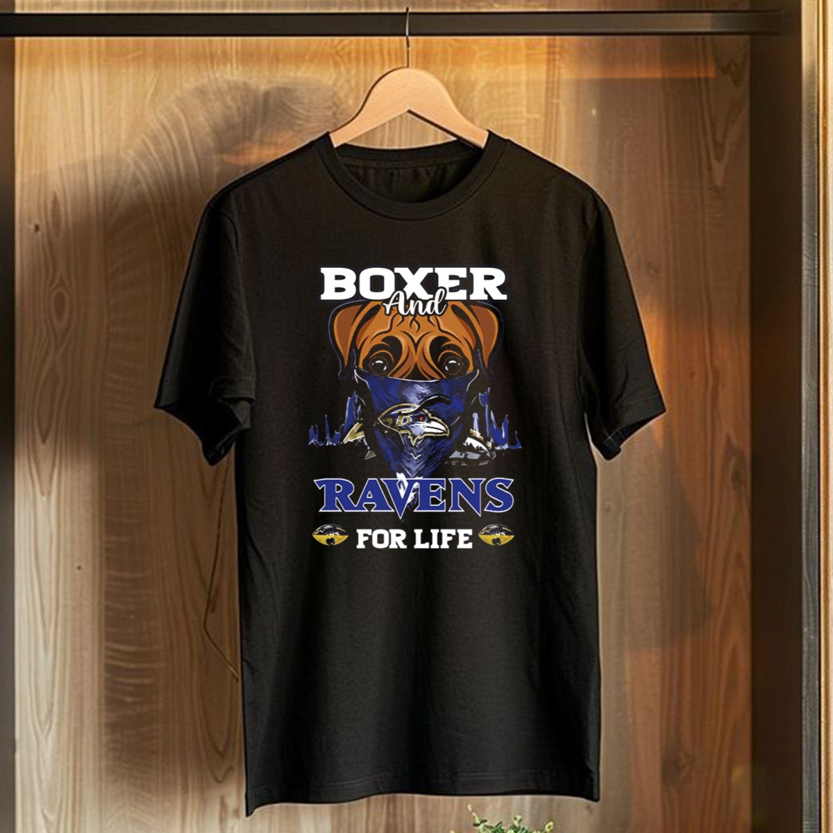 Show your unwavering support for the Baltimore Ravens with our Boxer And Ravens For Life T-Shirt! Perfect for die-hard fans, this tee is ideal for casual outings, themed events, or just lounging at home. Made with a unique fan-inspired design, it’s printed right here in the USA, ensuring you wear your pride with style and comfort.