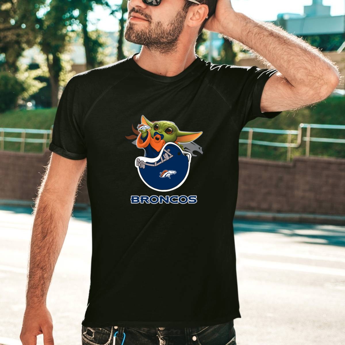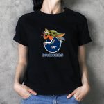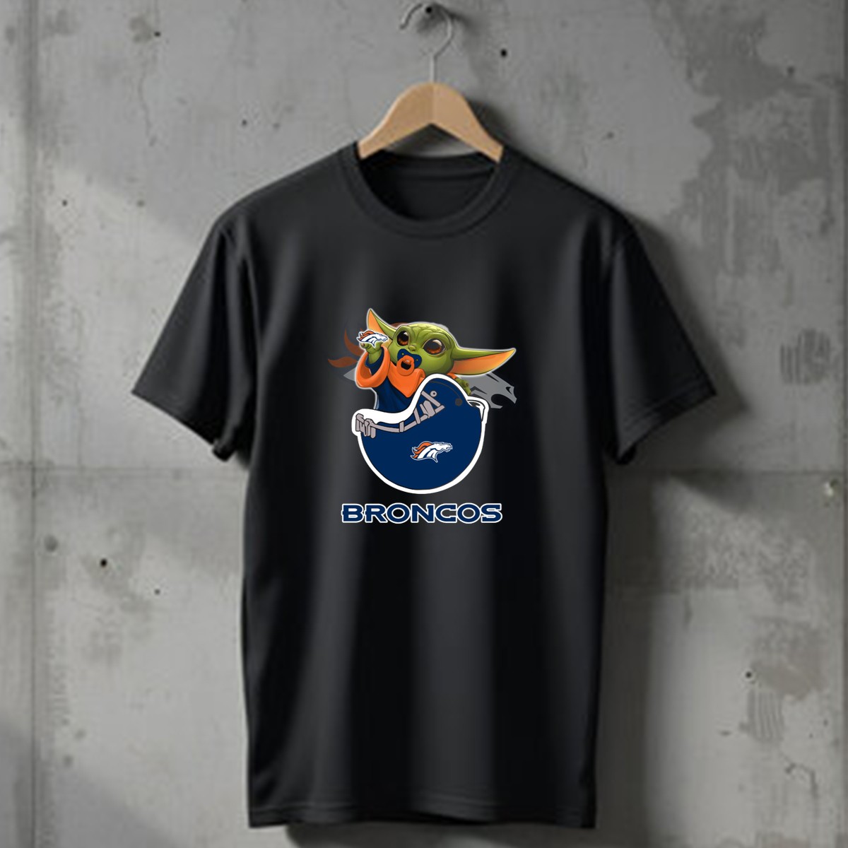 Broncos Baby Yoda Holding Football Toy With Denver Broncos T-Shirt