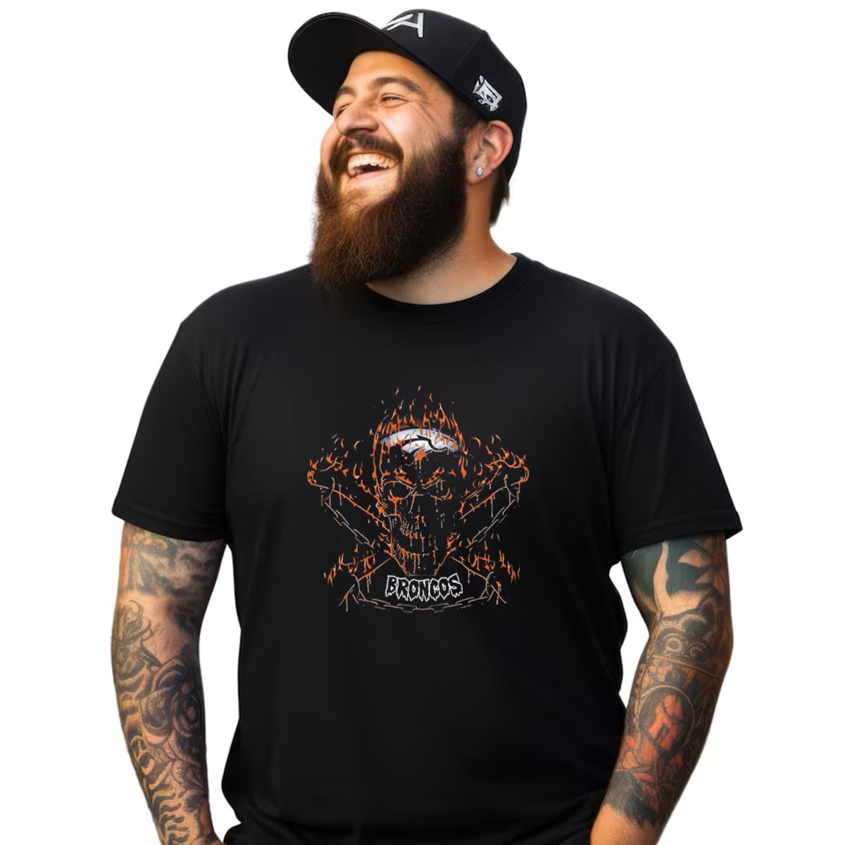 Show your team spirit with our Broncos Flaming Skull Logo T-Shirt, designed for die-hard Denver Broncos fans who want to make a bold statement. This eye-catching, fan-made design captures the fierce energy of the Broncos, making it perfect for casual outings, themed events, or daily wear. Crafted with comfort in mind, this shirt is a must-have for any true supporter looking to showcase their loyalty in style.