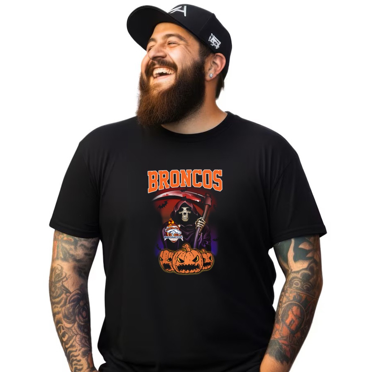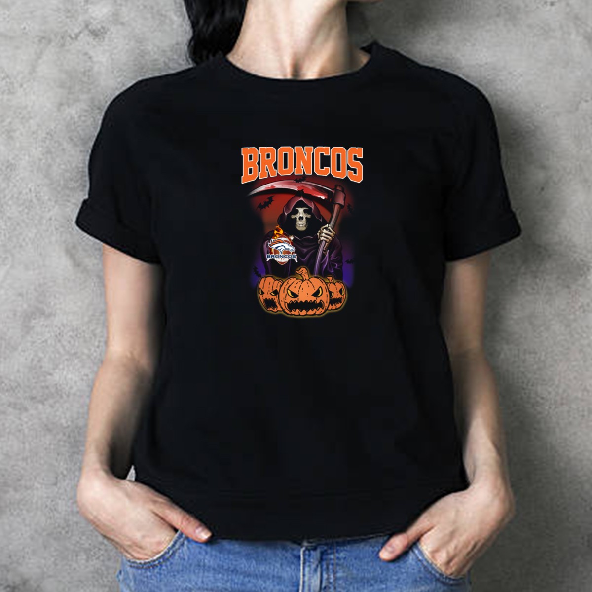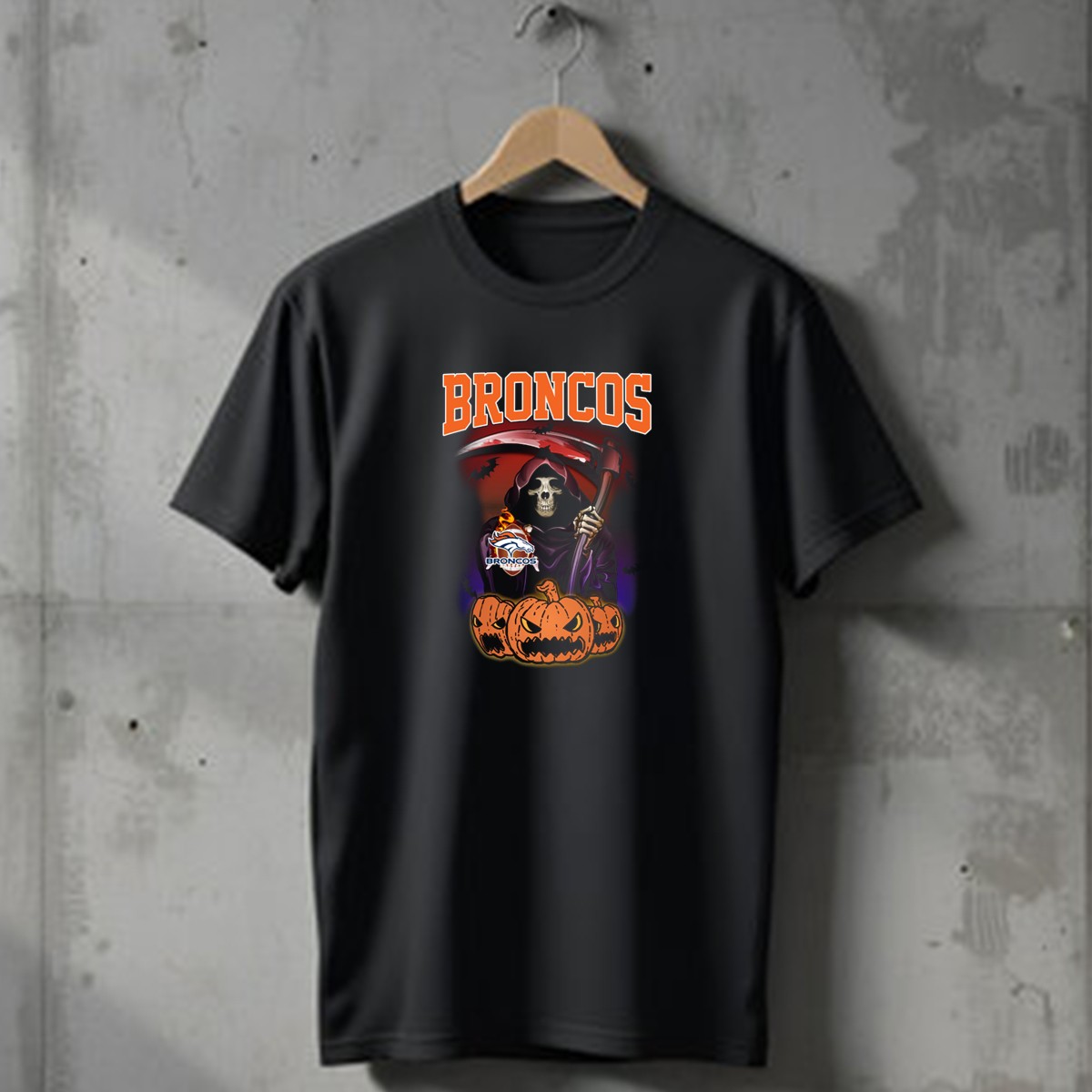 Embrace the spirit of Halloween with our fan-made Broncos Halloween Reaper T-Shirt, featuring a striking design that combines the iconic Denver Broncos logo with a chilling reaper scene. Perfect for die-hard fans and Halloween enthusiasts alike, this shirt is ideal for casual outings, themed events, or simply showing off your team pride in a spooky way. Crafted for comfort and style, it ensures you stand out while celebrating your love for the Broncos all season long.