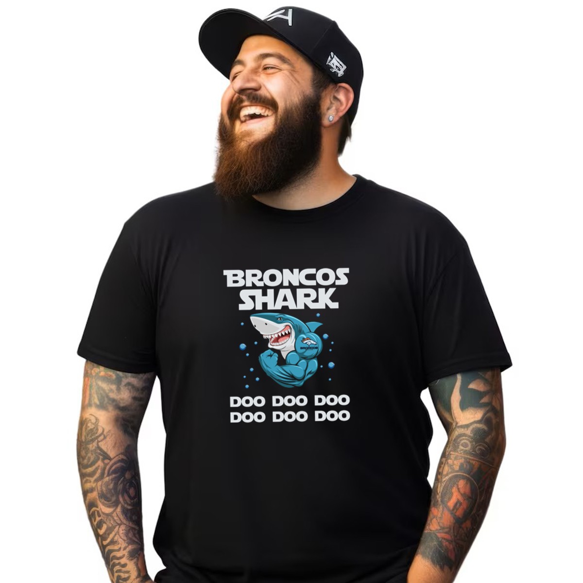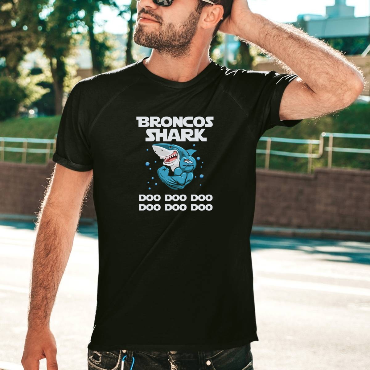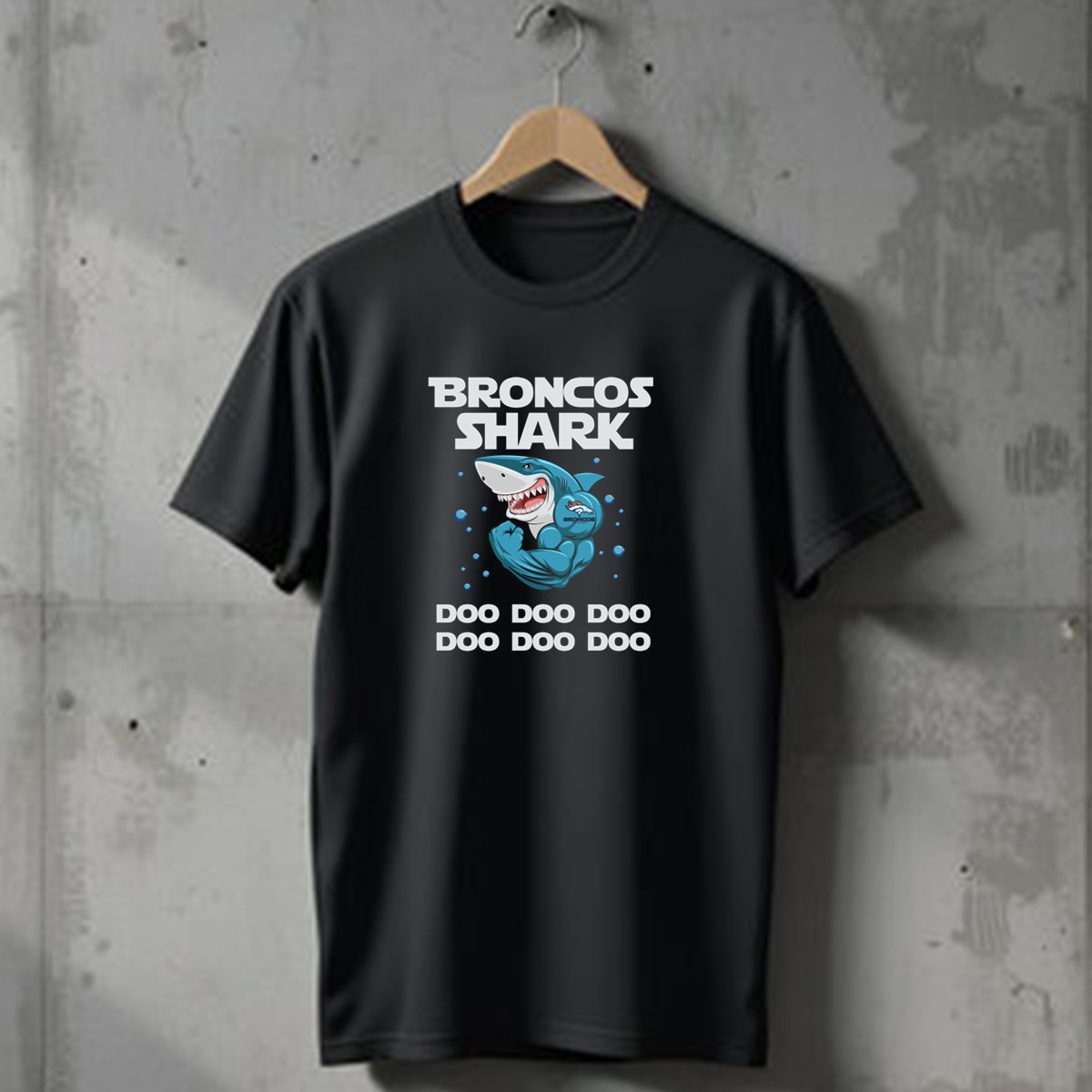 Broncos Shark Doo Doo Doo with Denver Broncos Logo and Cartoon Shark T-Shirt