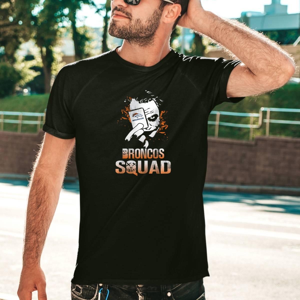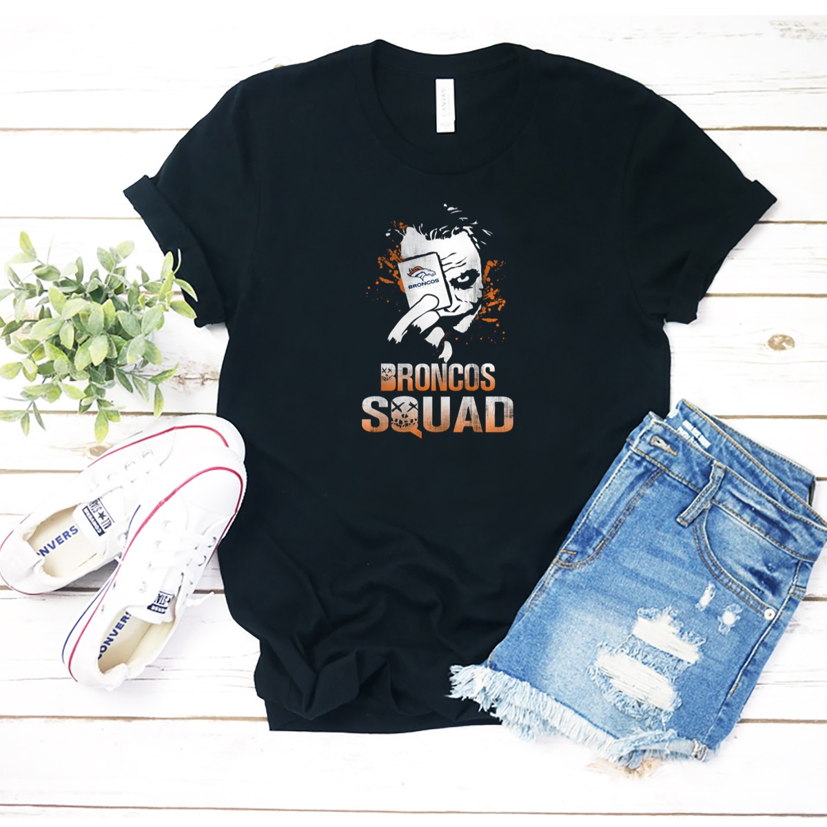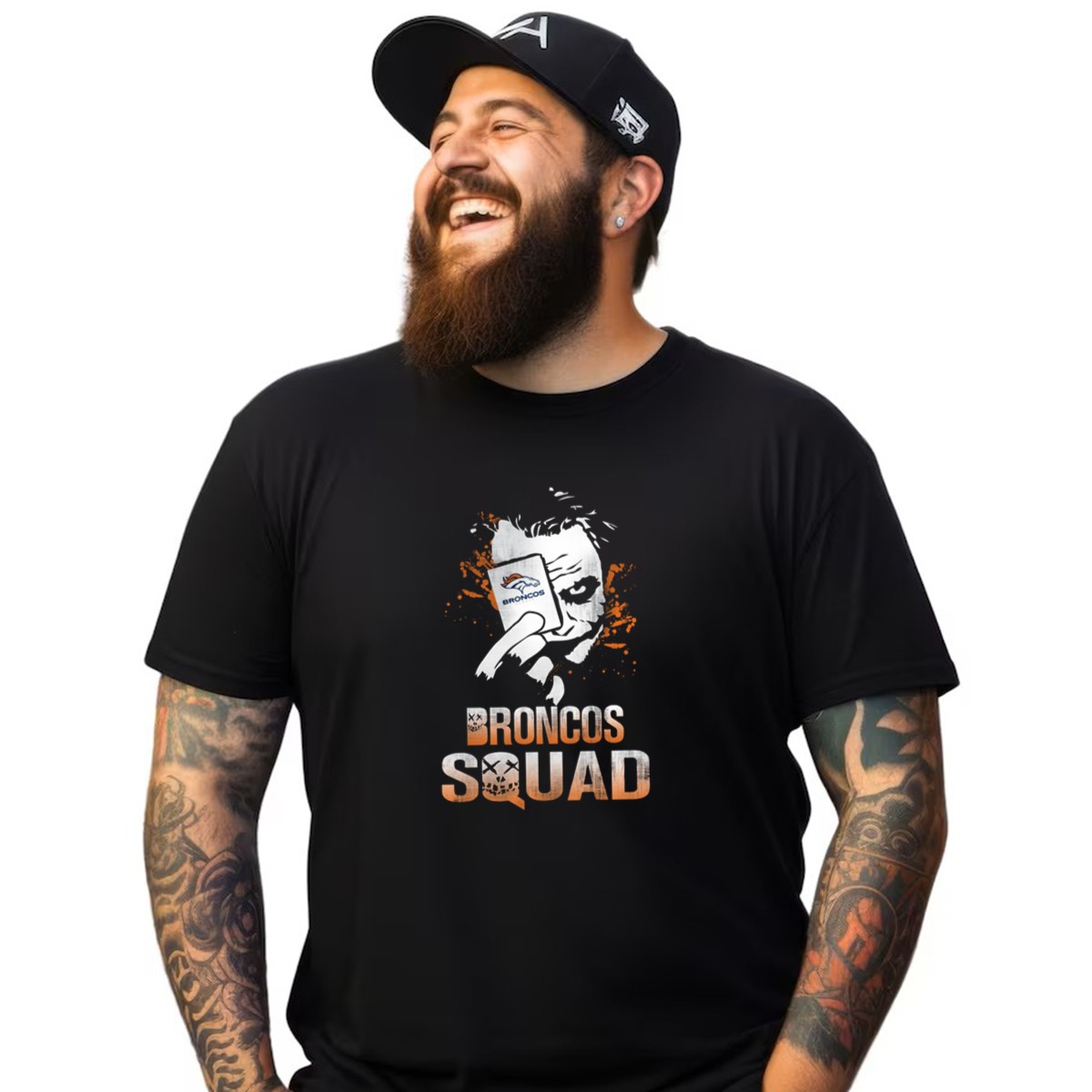 Show off your team spirit with the Broncos Squad Joker T-shirt, designed exclusively for passionate Denver Broncos fans! This fan-made design combines a playful twist with classic team pride, making it the perfect choice for casual outings, themed events, or just lounging around. Crafted for comfort and style, this shirt is a must-have for any true Broncos supporter looking to stand out in the crowd.