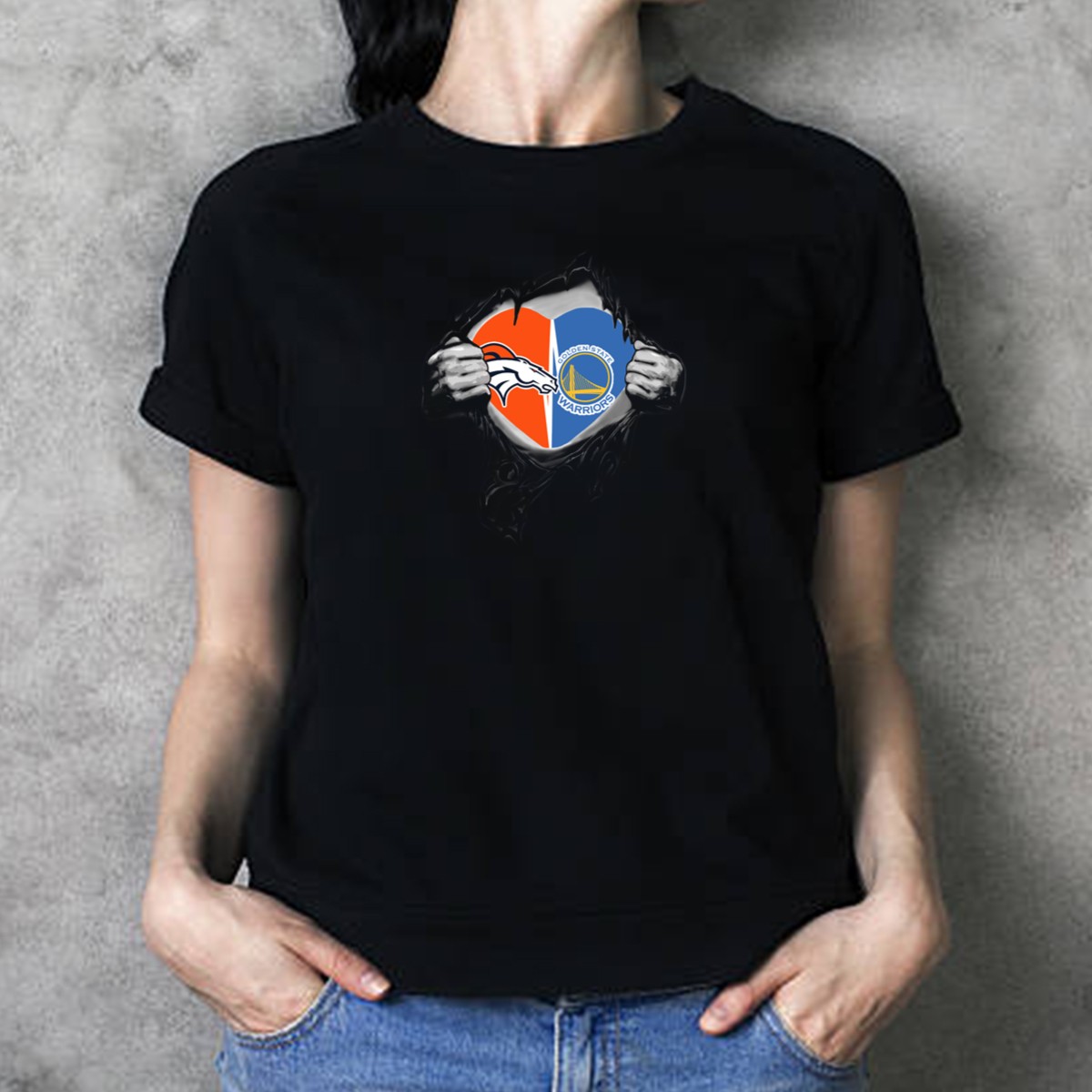 Show your team spirit with our Broncos Warriors Heart T-shirt, a perfect blend of passion for both the Denver Broncos and Golden State Warriors. This fan-made design is ideal for sports enthusiasts who enjoy casual outings, themed events, or simply want to showcase their love for both teams in everyday wear. Made with high-quality printing right here in the USA, this shirt is not just a piece of clothing; it’s a statement of your unwavering loyalty and style.