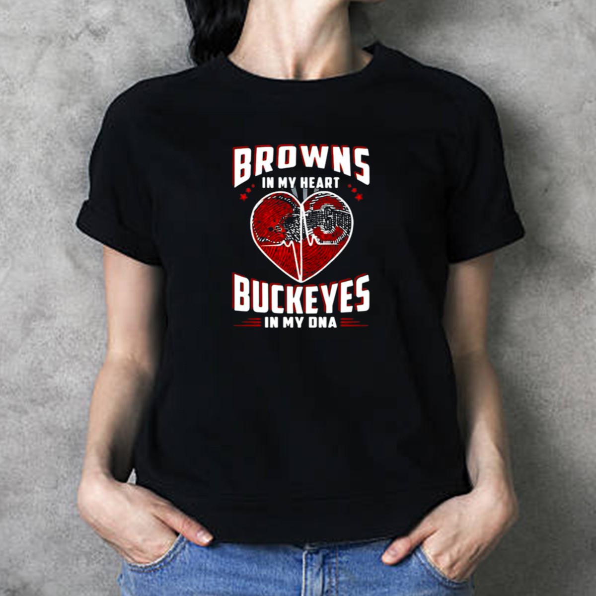 Show off your unwavering loyalty to both the Cleveland Browns and Ohio State with our “Browns in My Heart, Buckeyes in My DNA” T-shirt! Perfect for fans who live and breathe Ohio sports, this graphic printed tee is designed for casual wear, themed events, or your daily adventures. Made with love in the USA, this shirt combines comfort and style, making it a unique addition to any fan’s wardrobe.