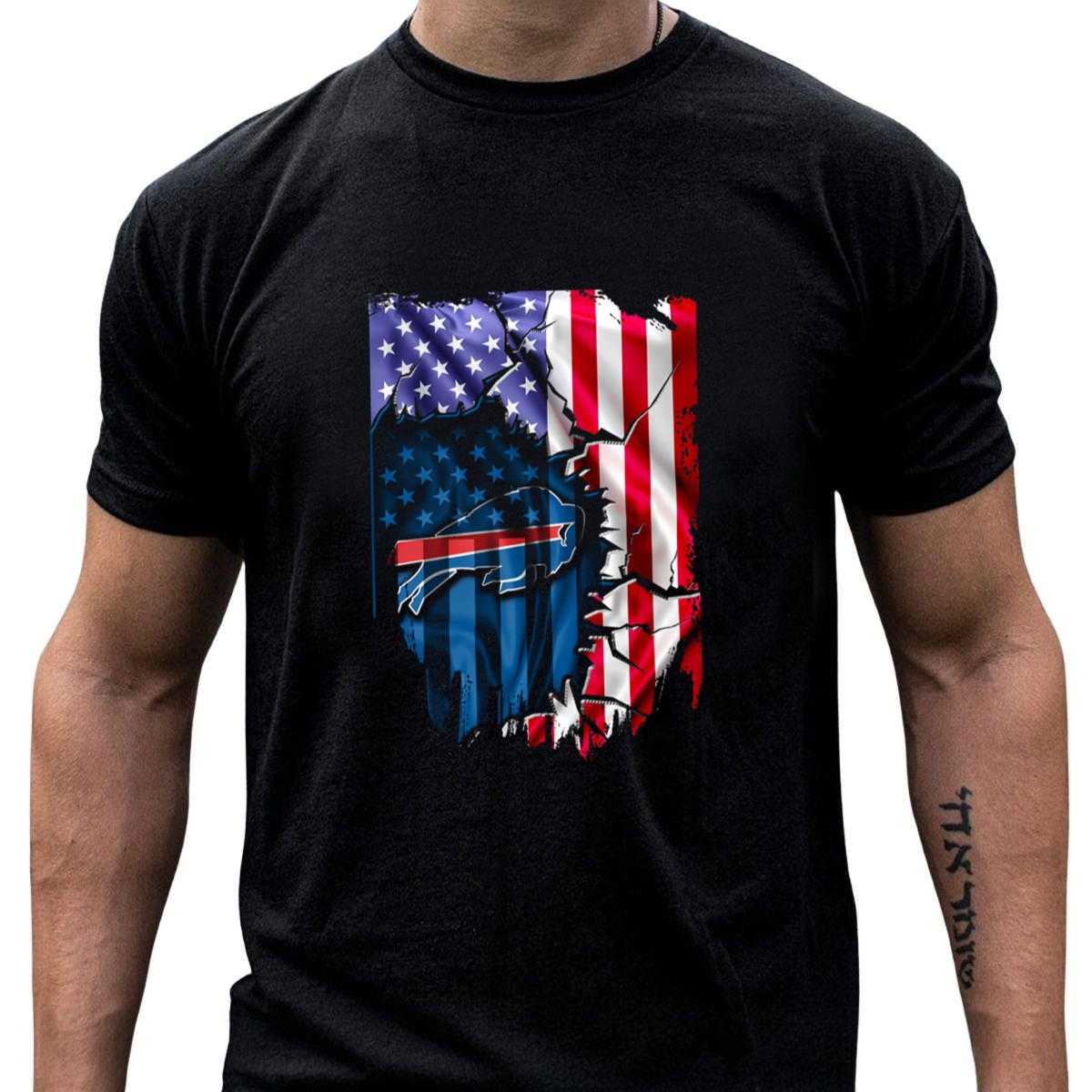 Show your love for the Buffalo Bills with our American Flag Cracked T-Shirt, perfect for die-hard fans and casual wear alike. This unique design combines team spirit with a patriotic flair, making it an ideal choice for game days, themed events, or any occasion where you want to stand out. Crafted with comfort in mind, this shirt is sure to become a staple in your wardrobe.
