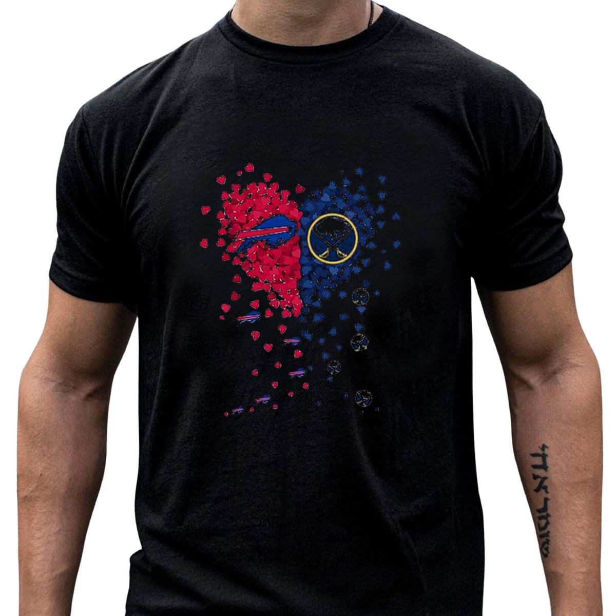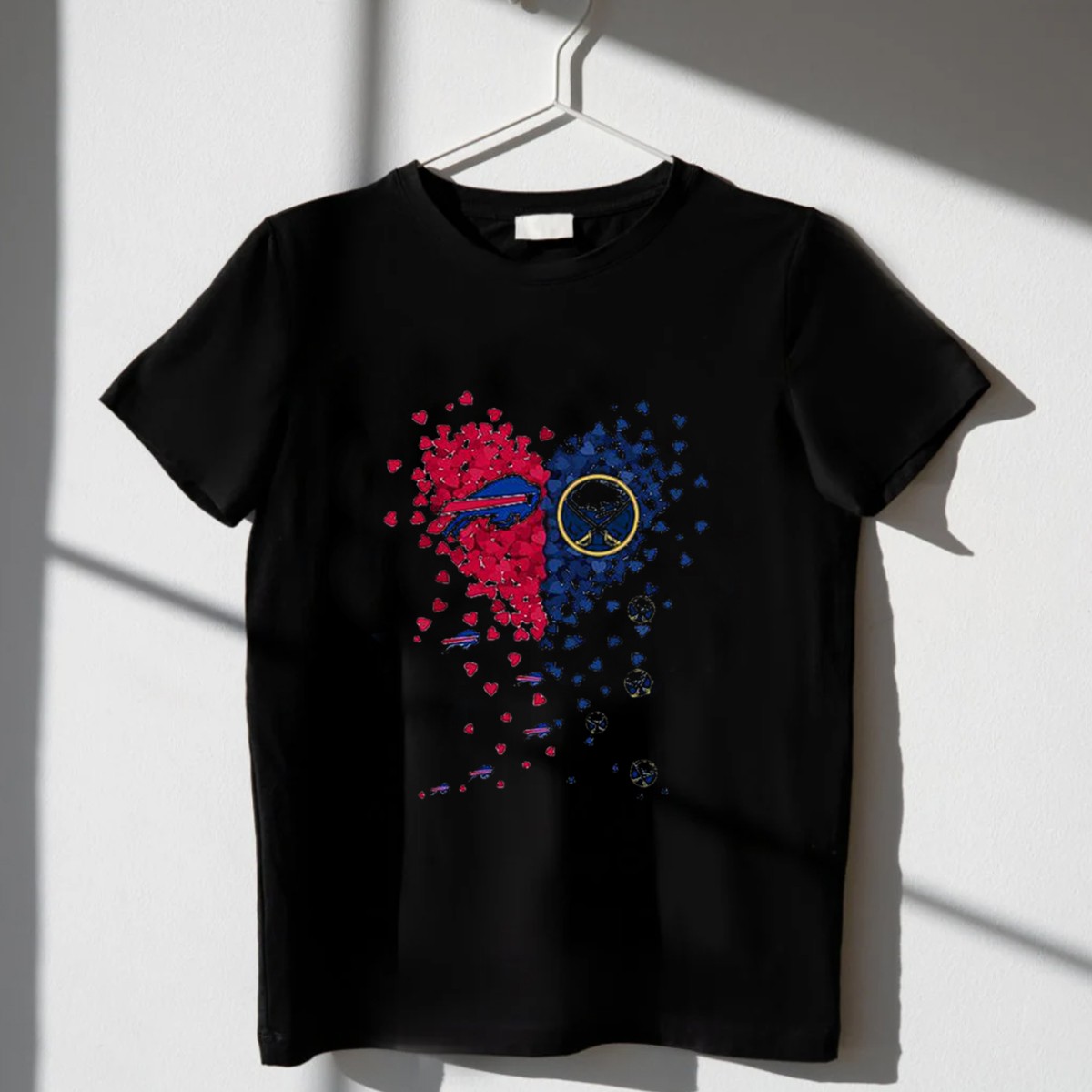 Show your love for Buffalo sports with our Buffalo Bills and Sabres Heart T-Shirt! This fan-made design is perfect for dedicated supporters who want to showcase their team spirit in style. Whether you’re cheering from the stands, attending a themed event, or just enjoying a casual day out, this shirt is designed for comfort and durability, making it an ideal addition to your all-season wardrobe.