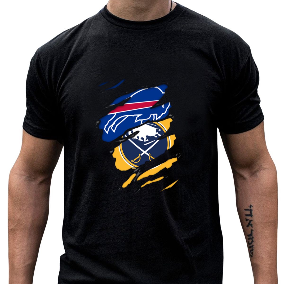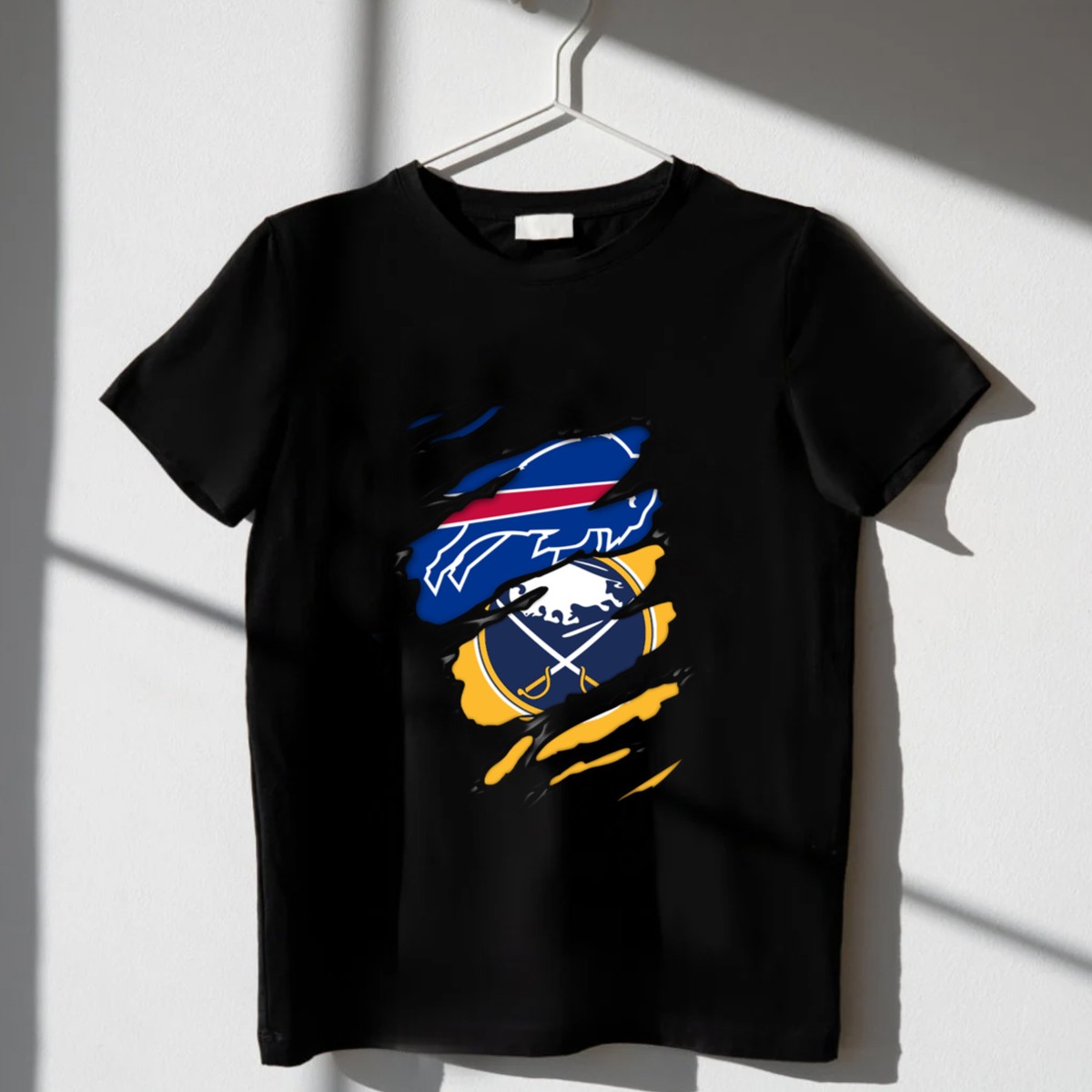 Show your unwavering support for your favorite teams with our Buffalo Bills and Sabres Torn T-Shirt. Designed for die-hard fans, this shirt is perfect for game day, casual outings, or themed events where you want to showcase your pride. Made with a fan-made design and printed right here in the USA, it’s a unique addition to any sports enthusiast’s wardrobe.