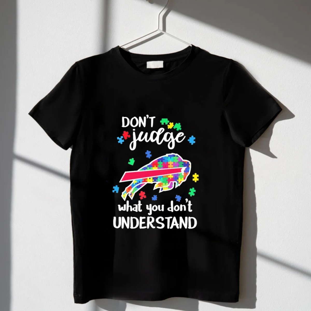 Show your support for the Buffalo Bills and promote awareness with our exclusive “Autism Don’t Judge What You Don’t Understand” T-shirt. Perfect for fans who want to express their passion for football while advocating for autism acceptance, this shirt is ideal for casual outings, themed events, or daily wear. Made with love in the USA, this fan-made design combines comfort and style, making it a standout piece in any wardrobe.