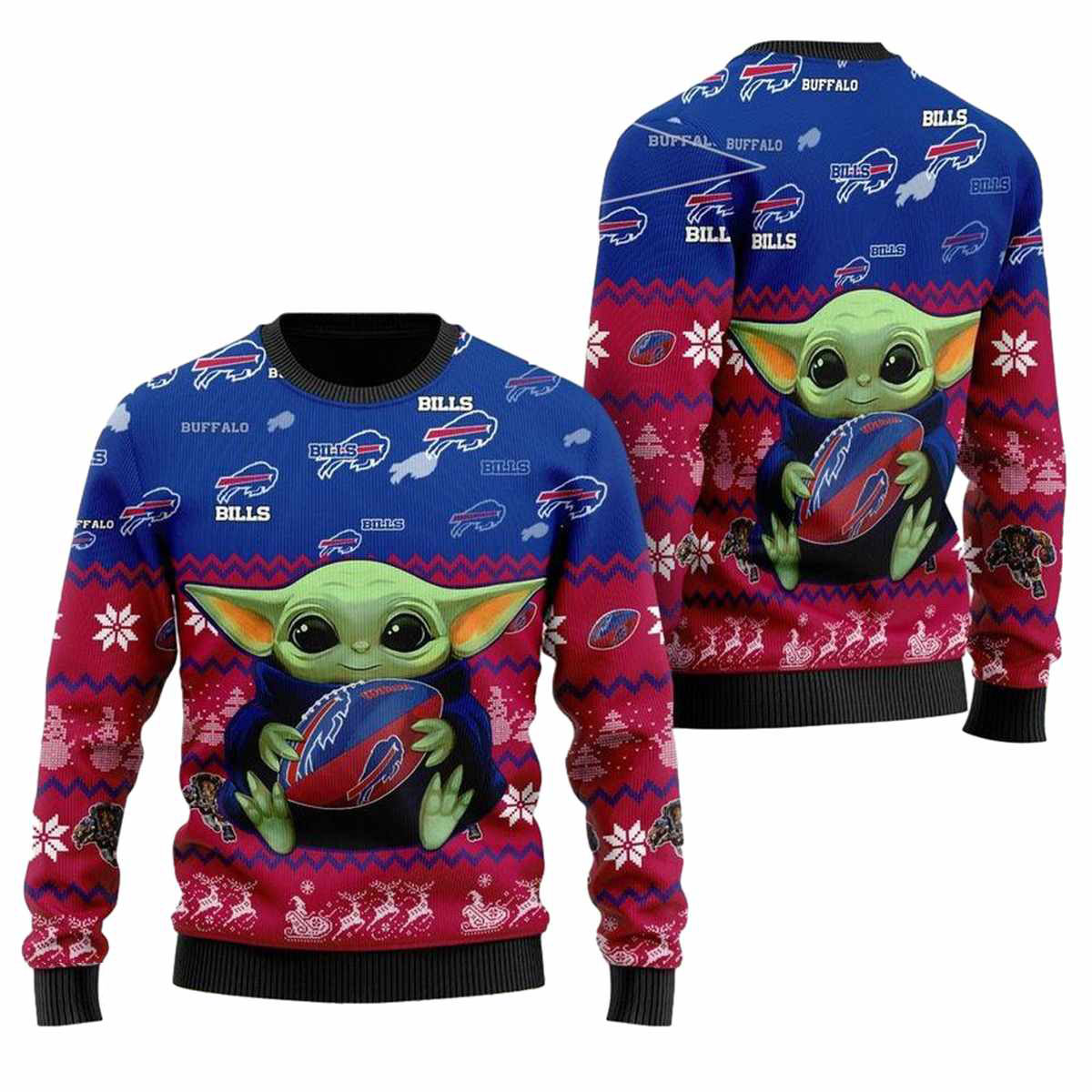 Get ready to cheer for your favorite team in the most adorable way with our Buffalo Bills Baby Yoda Hug Ball Ugly Sweater! Perfect for die-hard fans and anyone looking to spread some holiday cheer, this unique piece is a must-have for game days, cozy family gatherings, or casual winter outings. Its playful design combines the spirit of the Buffalo Bills with the beloved Baby Yoda, making it a standout in any festive wardrobe.