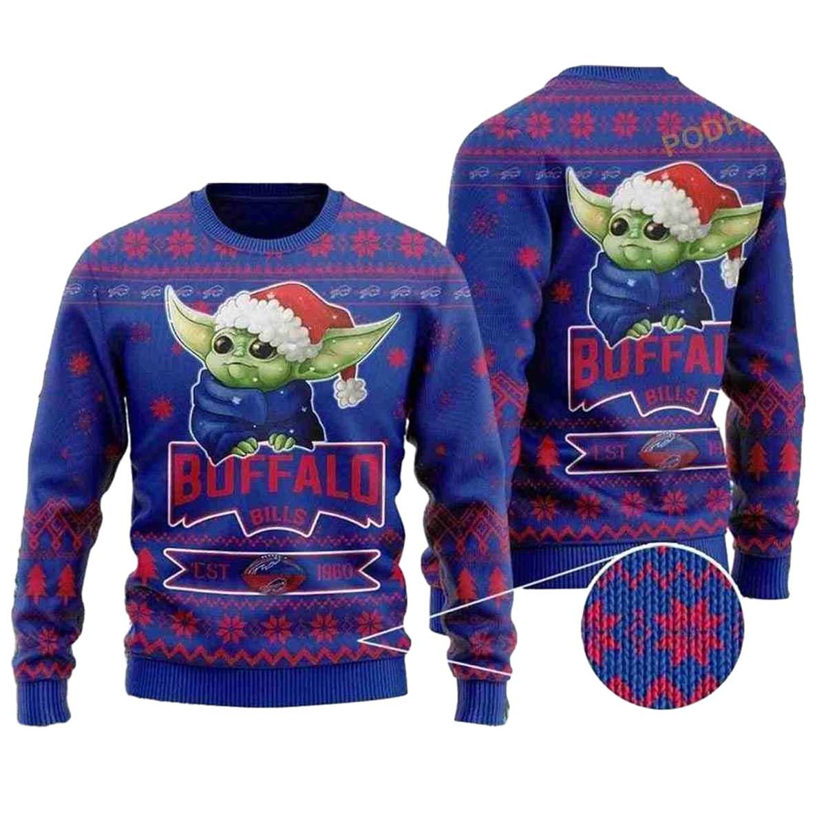 Get ready to turn heads and spread holiday cheer with our Buffalo Bills Baby Yoda With Santa Hat Funny Ugly Sweater! Perfect for sports fans and Star Wars enthusiasts alike, this playful design adds a whimsical touch to your winter wardrobe. Whether you’re hitting up a holiday party, cheering on your favorite team from the couch, or just enjoying a cozy night in, this sweater is your go-to for festive fun!