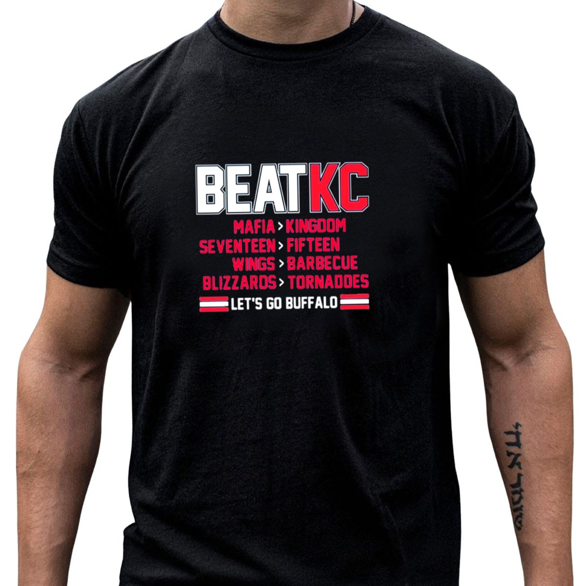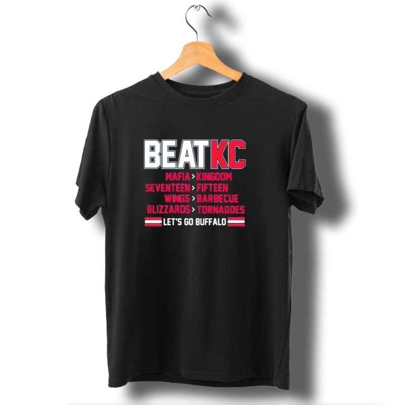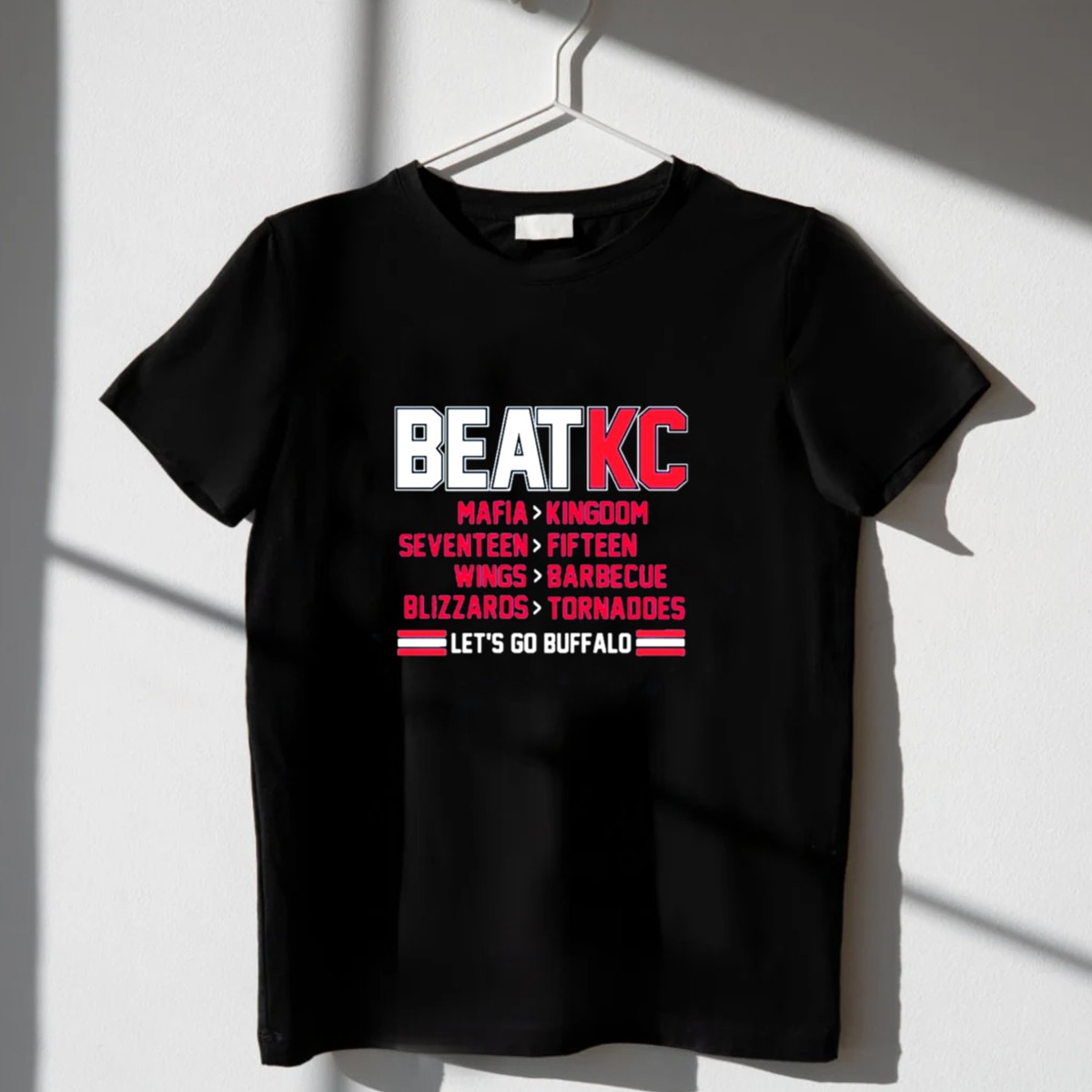 Show your unwavering support for the Buffalo Bills with our fan-made “Beatkc Let’s Go Buffalo” T-shirt! Perfect for die-hard fans and casual wearers alike, this shirt is designed for game days, themed events, or just lounging around while cheering on your favorite team. Made with quality in mind, it’s not just a shirt; it’s a statement of dedication and pride for the Bills Mafia, printed right here in the USA.