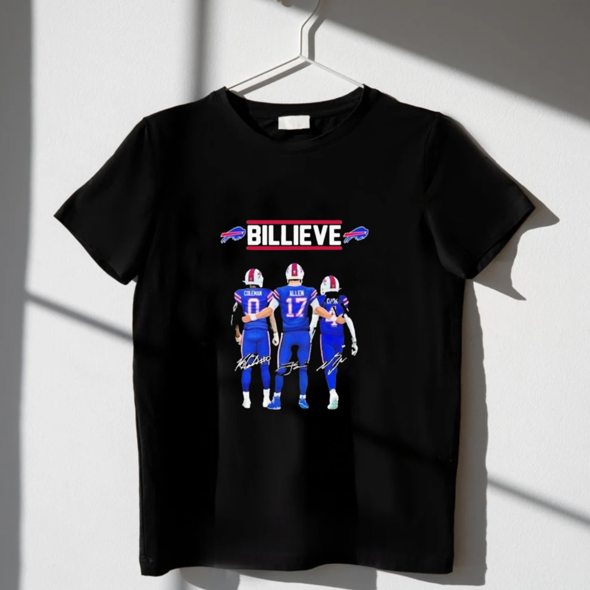 Show your unwavering support for the Buffalo Bills with the Billieve Coleman Allen Cook Signatures T-Shirt! This fan-made design captures the spirit of the team and its iconic players, making it a must-have for true Bills fans. Perfect for casual outings, themed events, or game day gatherings, this T-shirt combines comfort with style, allowing you to showcase your team pride wherever you go.