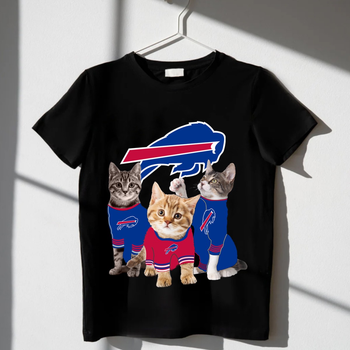 Show off your love for the Buffalo Bills and your feline friends with this unique fan-made T-shirt! Perfect for devoted fans and cat lovers alike, this graphic tee is designed for casual wear, themed events, or just lounging around the house. The soft, breathable fabric ensures you’ll stay comfortable whether you’re cheering on your team or spending time with your pets. Made with pride in the USA, this shirt is a must-have for anyone looking to combine their passion for sports and their love for cats!