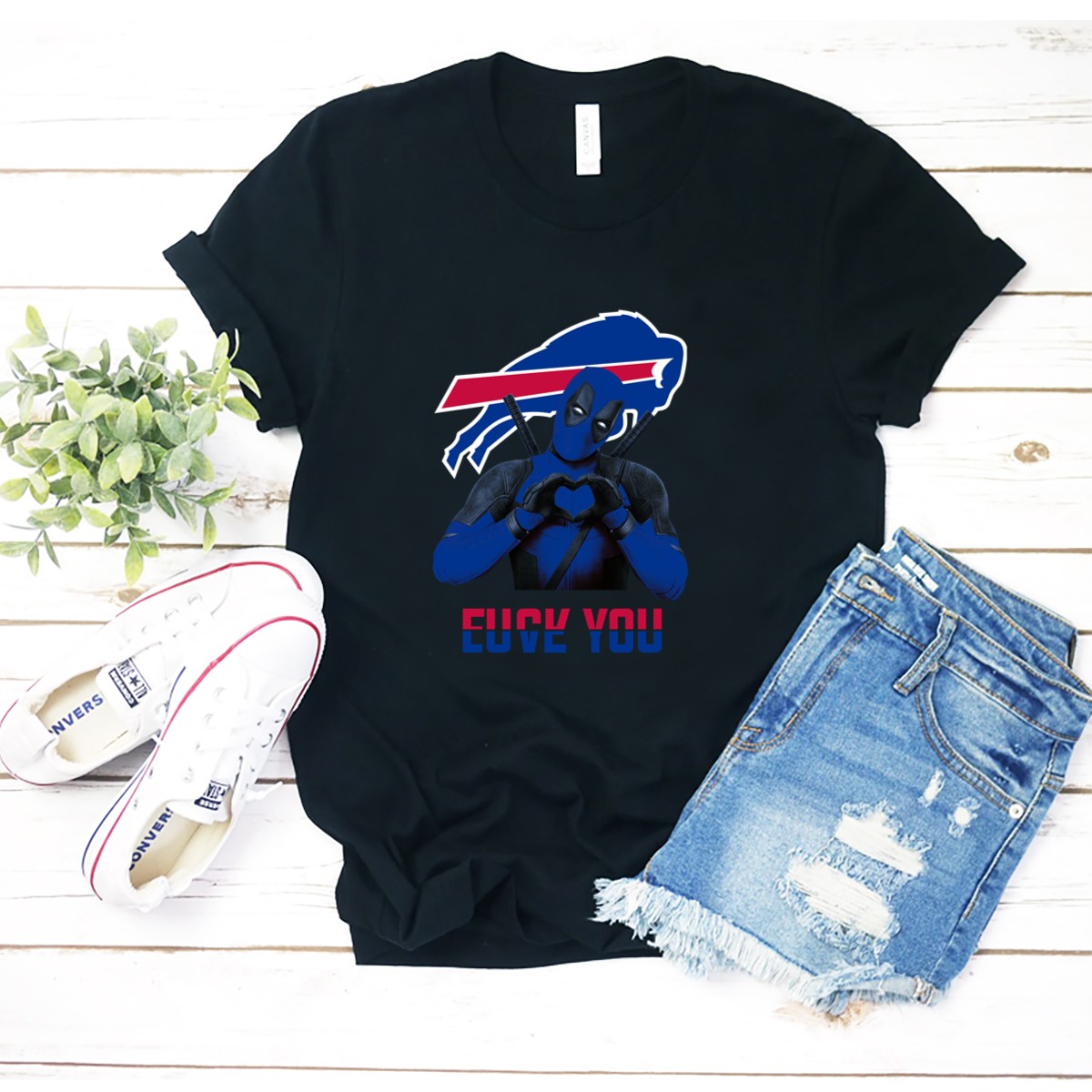 Show off your love for the Buffalo Bills with a twist of humor in our Deadpool-themed “Fuck You Love You” T-shirt! Perfect for fans who appreciate sarcasm and style, this shirt is ideal for casual outings, themed events, or just lounging around. Made with care in the USA, this unique design lets you express your fandom while keeping comfort at the forefront.