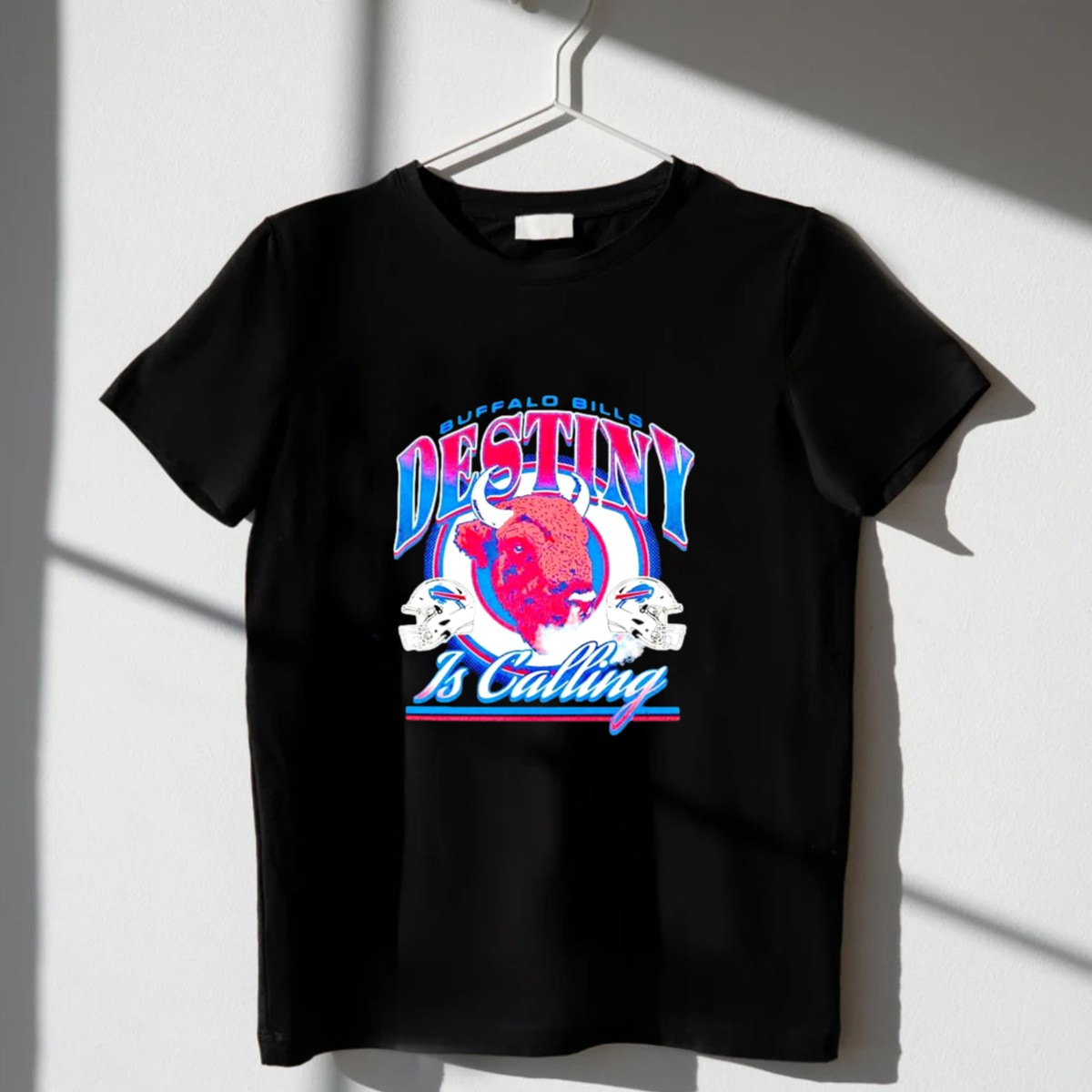 Celebrate your passion for the Buffalo Bills with our fan-made “Destiny Is Calling” T-shirt, perfect for die-hard fans and casual wearers alike. Crafted with comfort in mind, this shirt is ideal for themed events, game days, or just lounging around. Made in the USA, its unique design lets you show off your team spirit wherever you go!