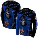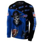 Elevate your streetwear game with the Buffalo Bills Grim Vibe Blue Black AOP Sweatshirt, designed for those who crave comfort and style. Perfect for any casual outing, gym session, or cozy day at home, this unique sweatshirt showcases a striking all-over print that embodies a modern edge. Its relaxed fit makes it a versatile staple in your wardrobe, suitable for anyone looking to make a statement.