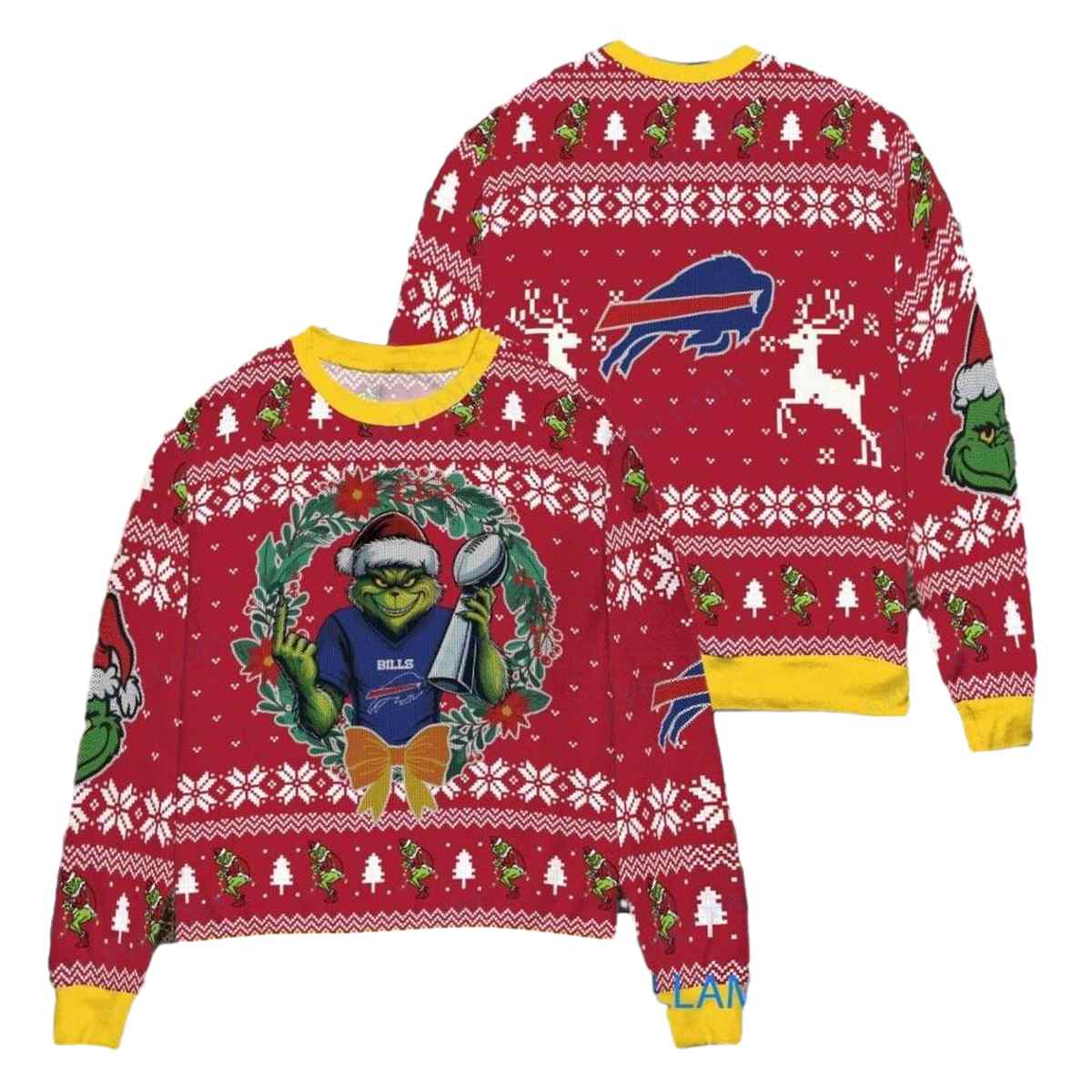 Buffalo Bills Grinch Santa Claus Hug Super Bowl Trophy Ugly Sweater