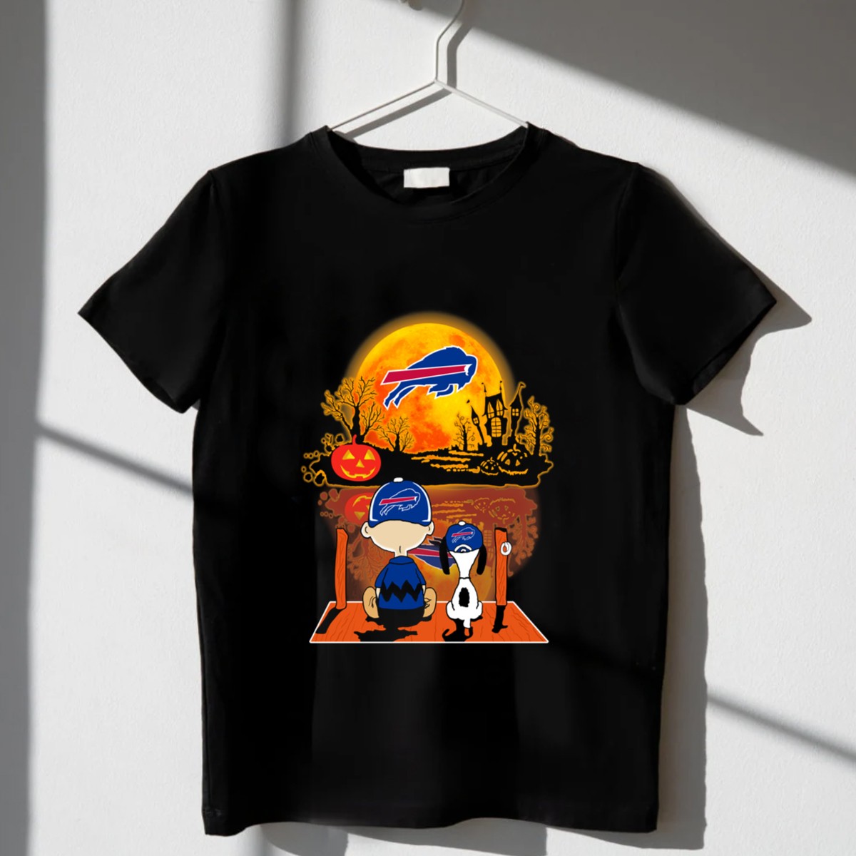 Buffalo Bills Halloween Snoopy And Charlie Brown Pumpkin Full Moon T-Shirt