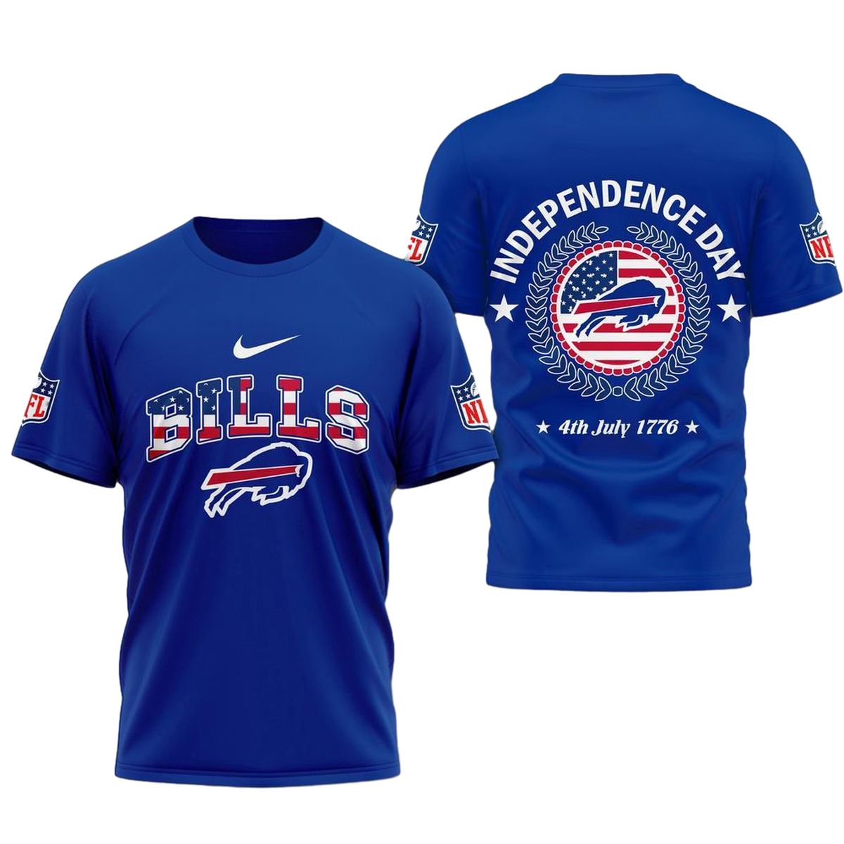 Celebrate your love for the Buffalo Bills with our Happy Independence Day all-over printed T-shirt! Perfect for fans who want to showcase their team spirit during casual outings, barbecues, or game day gatherings, this shirt is a unique blend of patriotism and team pride that’s sure to turn heads.
