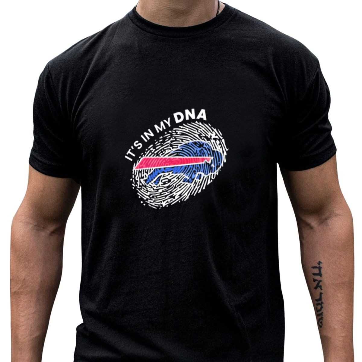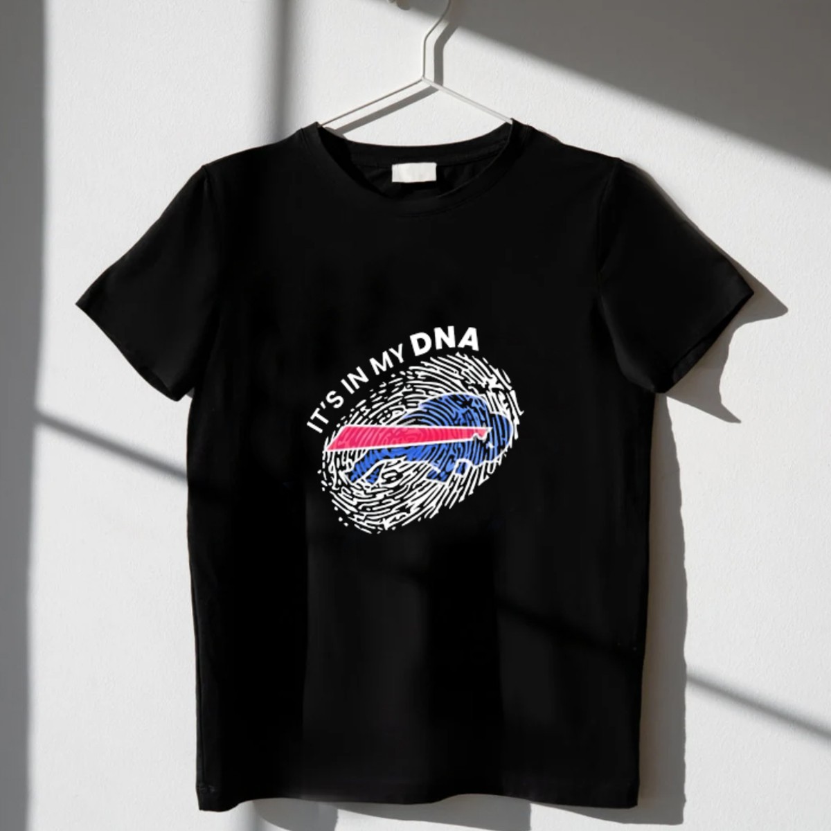 Show off your pride for the Buffalo Bills with our fan-made “It’s In My DNA” fingerprint T-shirt! Perfect for die-hard fans and anyone who loves to support their team, this shirt is ideal for casual outings, themed events, or just everyday wear. Made with care in the USA, this unique design combines a stylish aesthetic with a comfortable fit, making it a must-have for any Bills enthusiast.