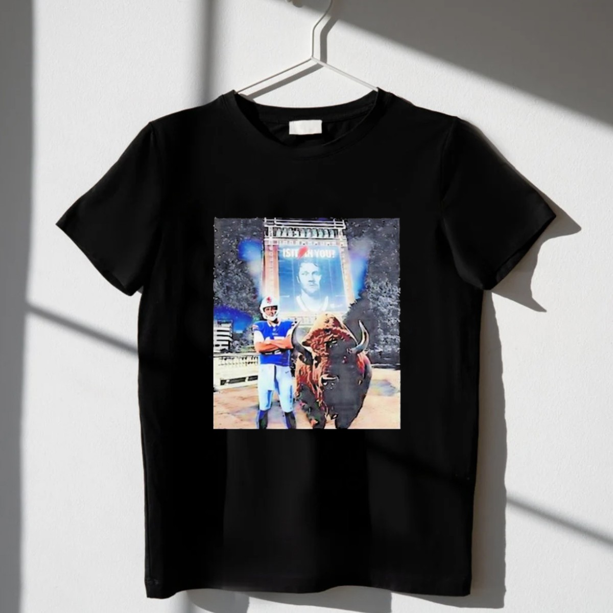 Show your unwavering support for the Buffalo Bills and their star quarterback with the iconic “Is It In You” Josh Allen T-shirt! This fan-made design captures the spirit of football passion, making it the perfect choice for dedicated fans. Ideal for game days, casual outings, or themed events, this T-shirt combines comfort with style, ensuring you look great while cheering for your team. Proudly printed in the USA, this shirt is a must-have for every Bills supporter!