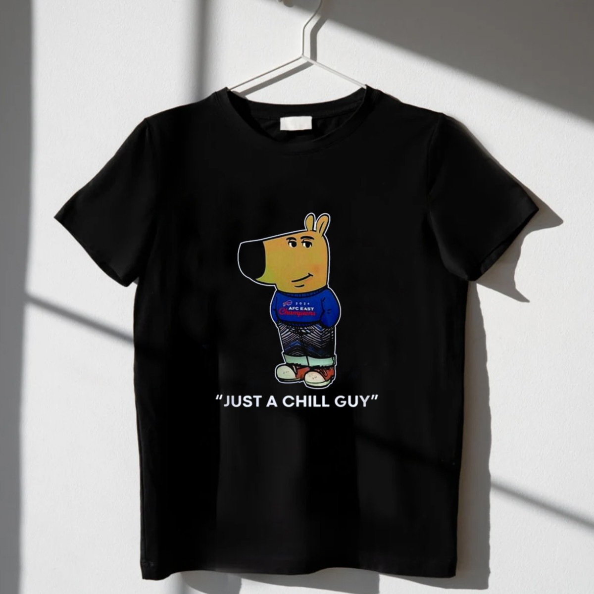 Show off your team spirit with the Buffalo Bills “Just A Chill Guy” 2024 AFC East Champions T-Shirt! Perfect for die-hard fans and casual wear enthusiasts alike, this shirt is a must-have for game days, themed events, or simply lounging around. Made with a unique fan-made design, it celebrates the Bills’ victory in style and comfort, making it an essential addition to your wardrobe.