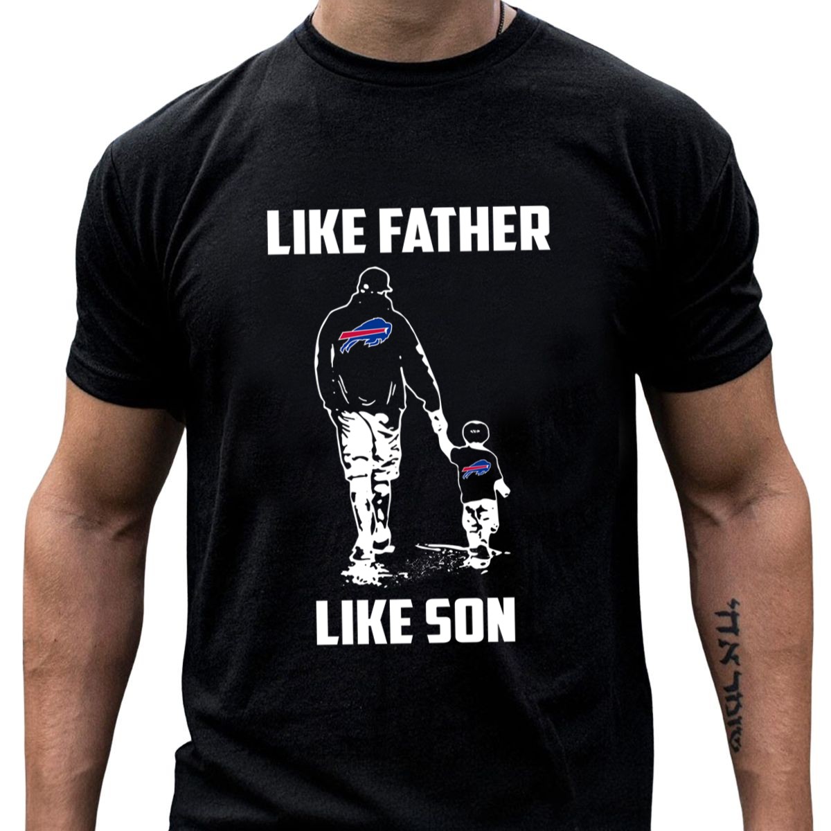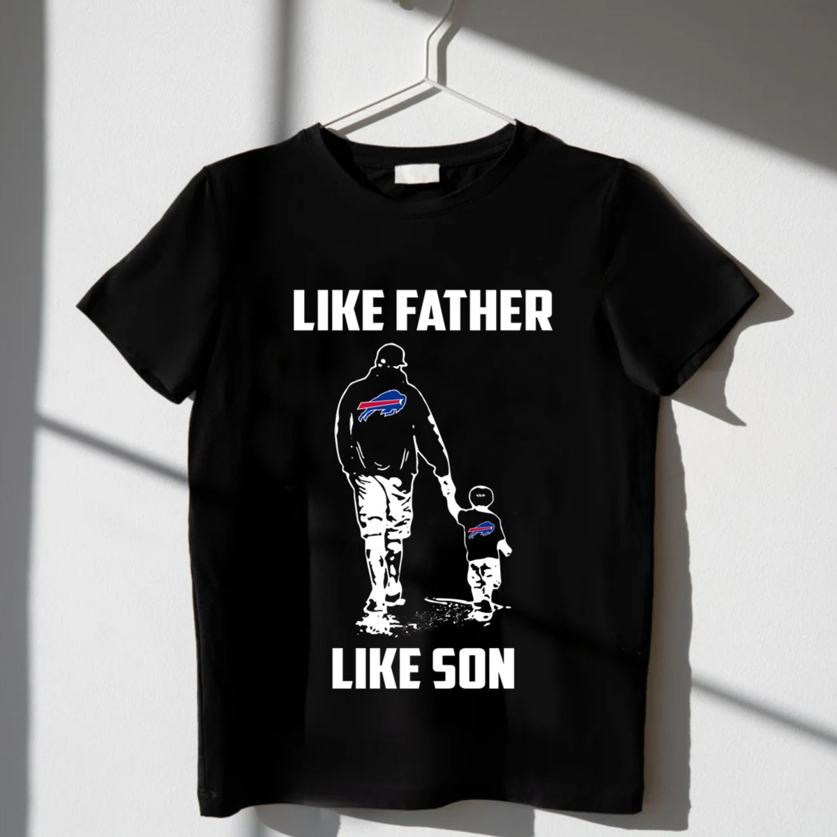 Show your team spirit and celebrate the special bond between fathers and sons with our “Buffalo Bills Like Father Like Son” T-shirt. This fan-made design is perfect for die-hard Buffalo Bills fans who want to share their love for the game with the next generation. Whether you’re at a game, hosting a watch party, or enjoying a casual day out, this shirt offers a comfortable fit and unique style that makes it a must-have for any Bills fan.