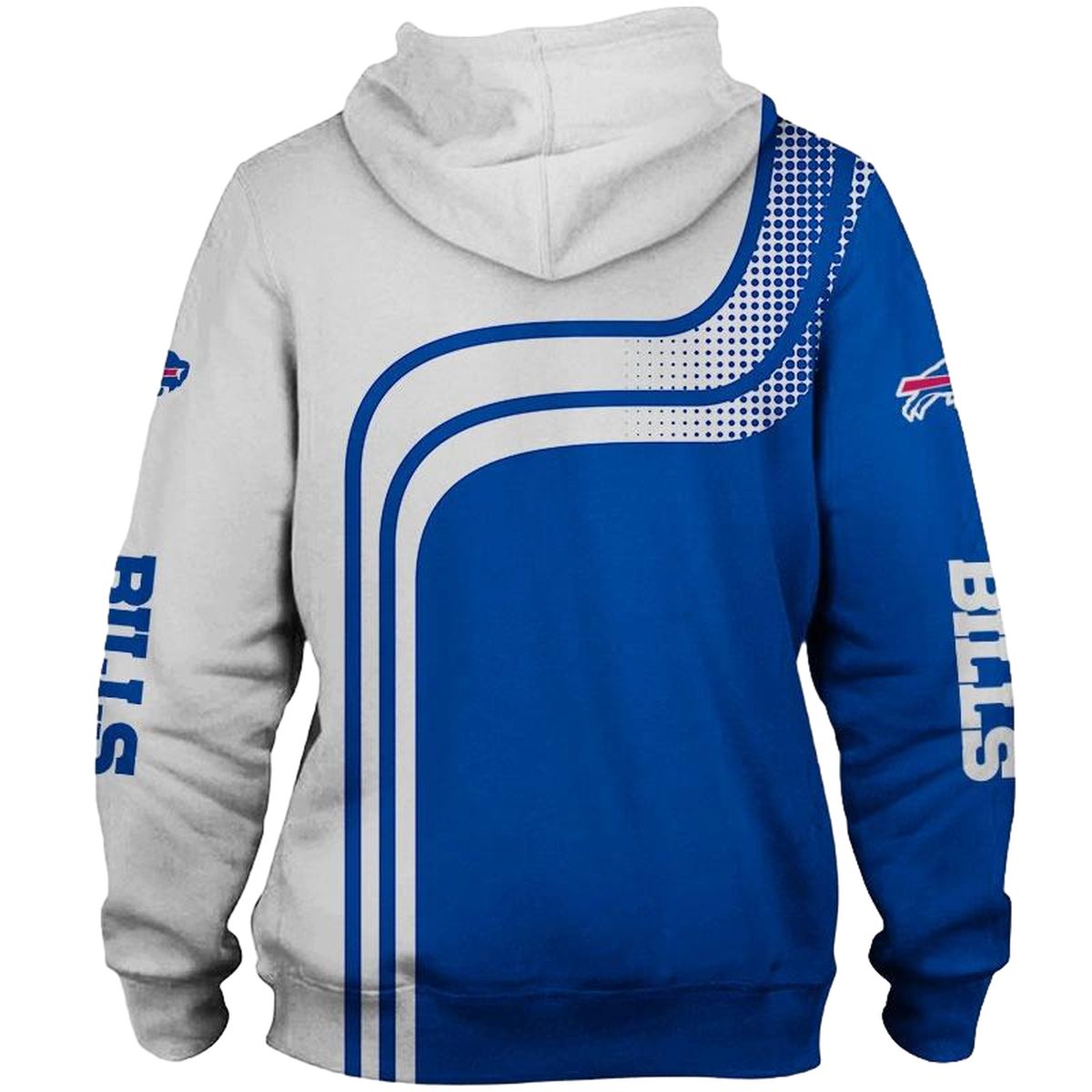 Show your unwavering support for the Buffalo Bills with our Buffalo Bills Logo One Way White And Blue All-Over Print Hoodie. Designed for fans who love to showcase their team spirit, this hoodie is perfect for casual outings, game days, or simply lounging at home. Its unique all-over print not only makes a bold statement but also ensures you stand out in the crowd while staying cozy.