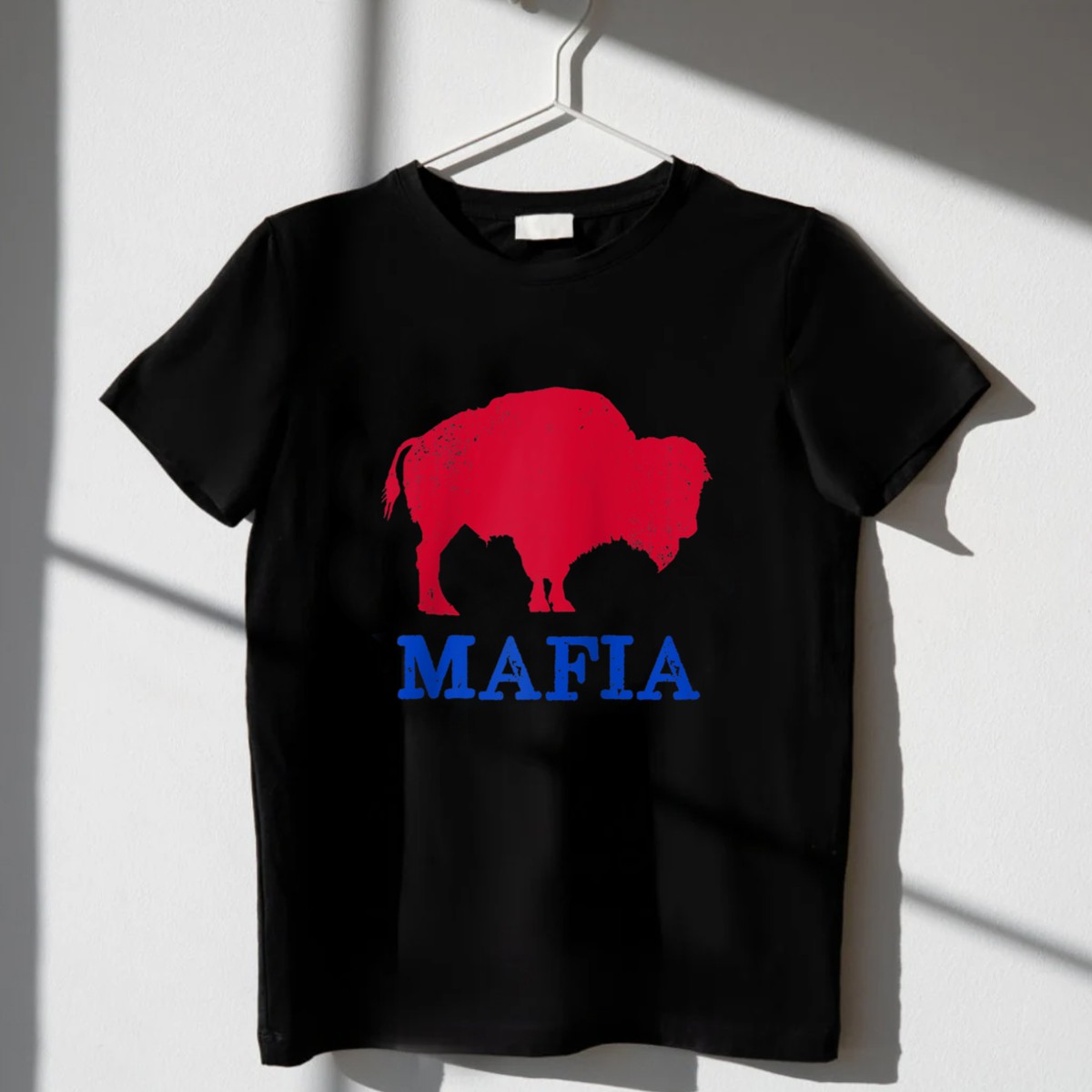 Show your unwavering support for the Buffalo Bills with our fan-made Buffalo Bills Mafia T-shirt! This eye-catching design captures the spirit of the 716 and is perfect for die-hard fans who live and breathe Buffalo football. Whether you’re cheering from the stands, enjoying a themed event, or simply flaunting your team pride in your daily wear, this classic fit T-shirt is a must-have for any Bills supporter. Printed in the USA with soft, durable fabric, this shirt promises comfort and style for all seasons.
