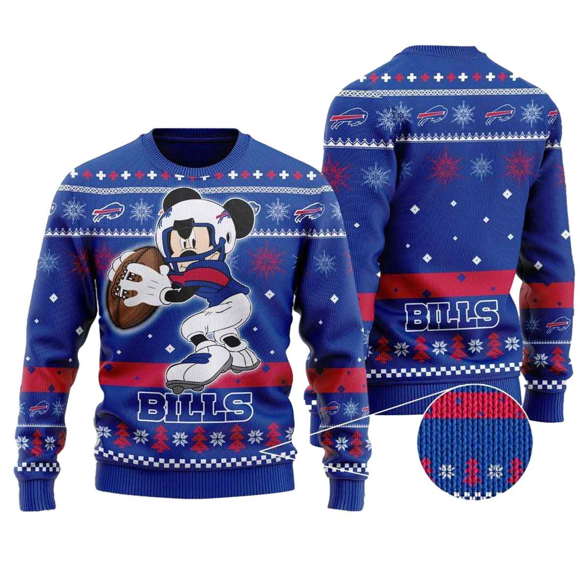 Get ready to cheer in style with our Buffalo Bills Mickey Mouse Funny Ugly Sweater! Perfect for fans who love to blend sports with a touch of whimsy, this sweater is ideal for game days, holiday parties, or just snuggling up at home. Its unique design brings together the beloved Mickey Mouse with your favorite team, making it a standout piece that’s sure to spark conversations and laughter!