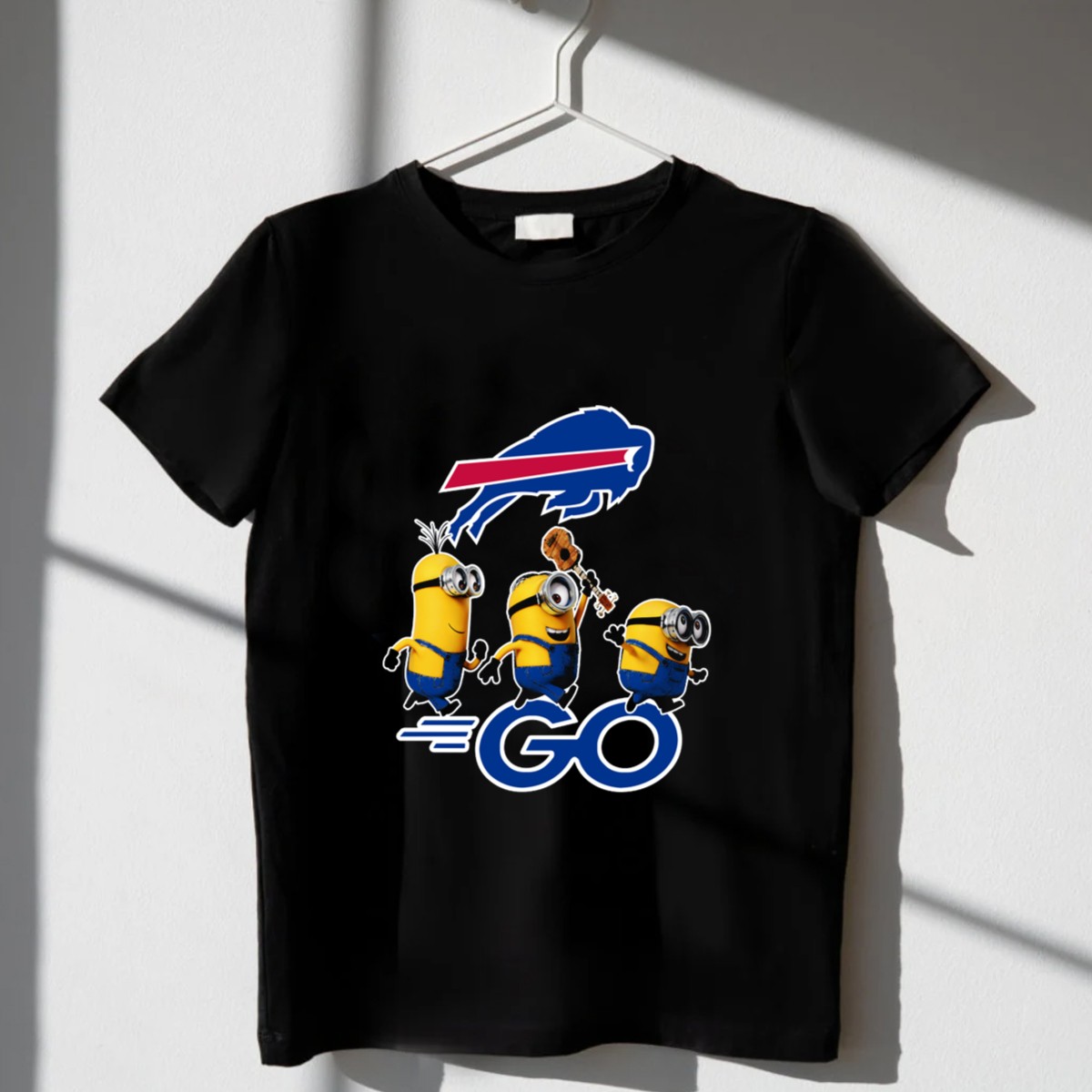 Get ready to cheer on your favorite team with our Buffalo Bills Minions Go T-Shirt! This fan-made design combines the love for the Buffalo Bills with the playful charm of Minions, making it the perfect choice for die-hard fans and families alike. Ideal for casual outings, themed events, or simply showing off your team spirit during daily wear, this shirt brings a unique flair to any occasion. Made for comfort and style, it’s a must-have for all-season fun!