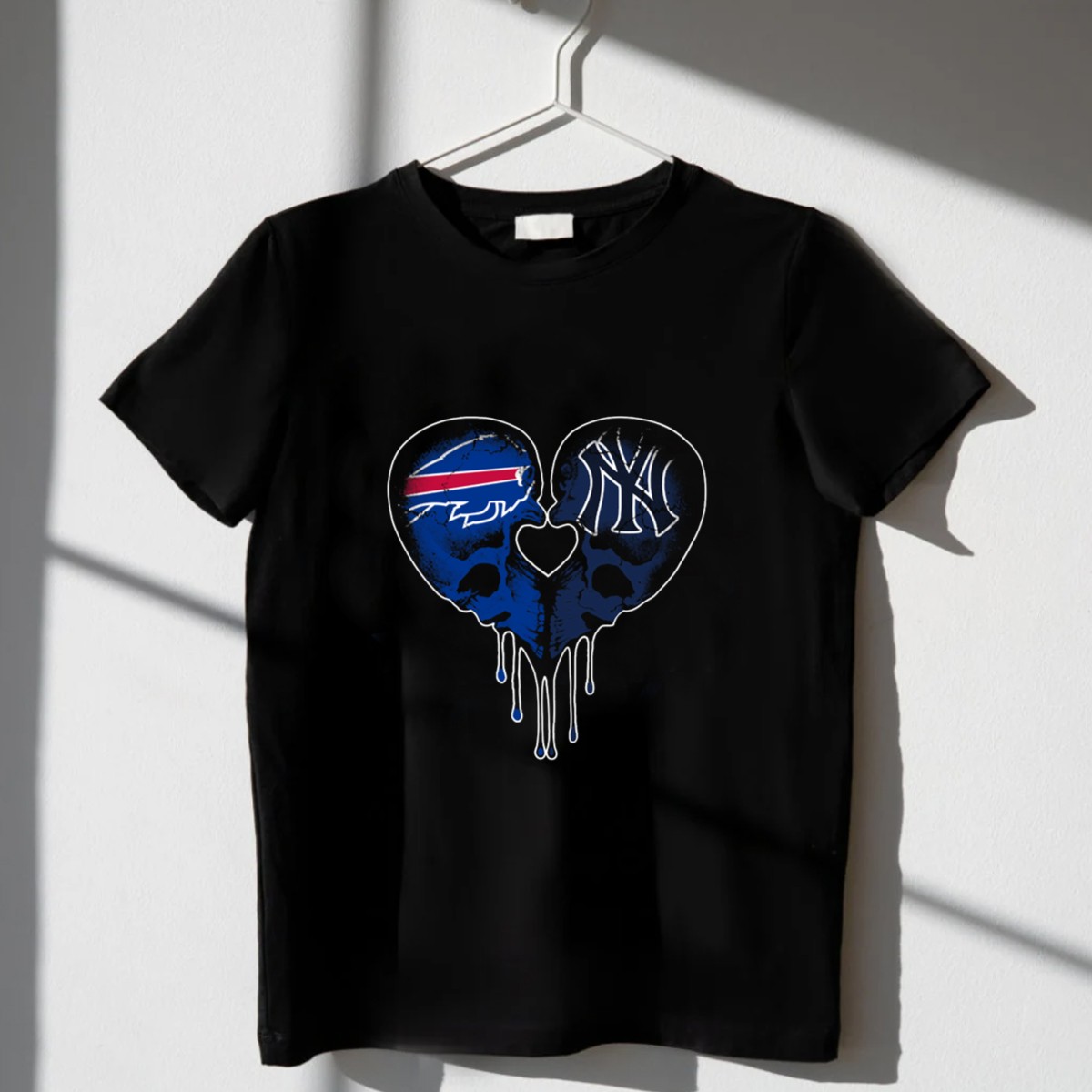 Buffalo Bills New York Yankees Skull Heart Love T-Shirt