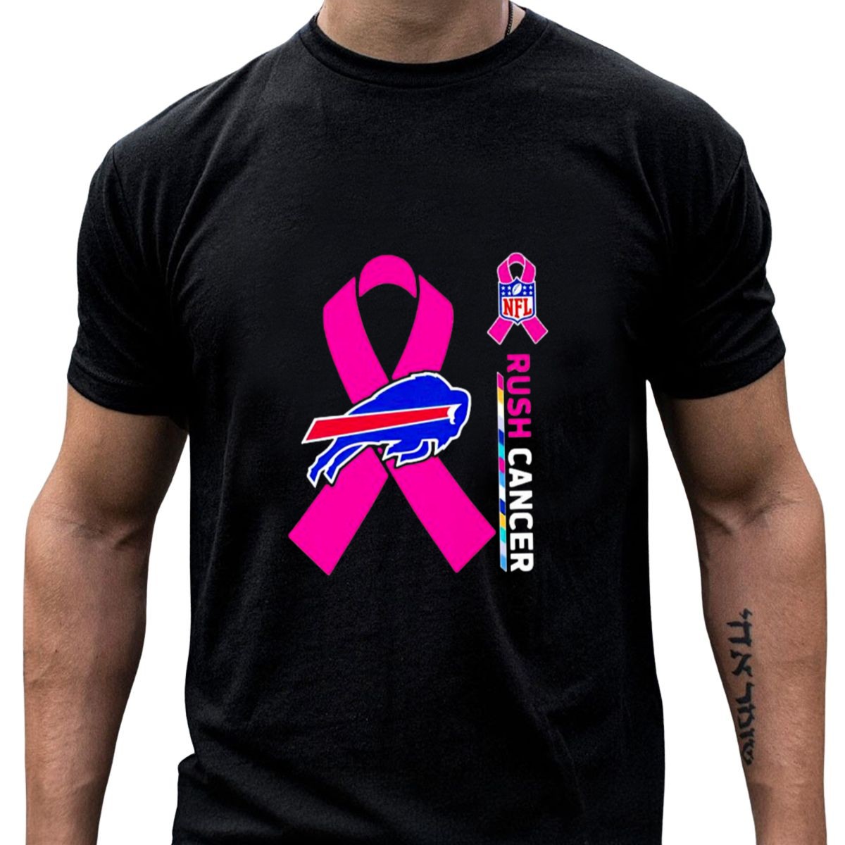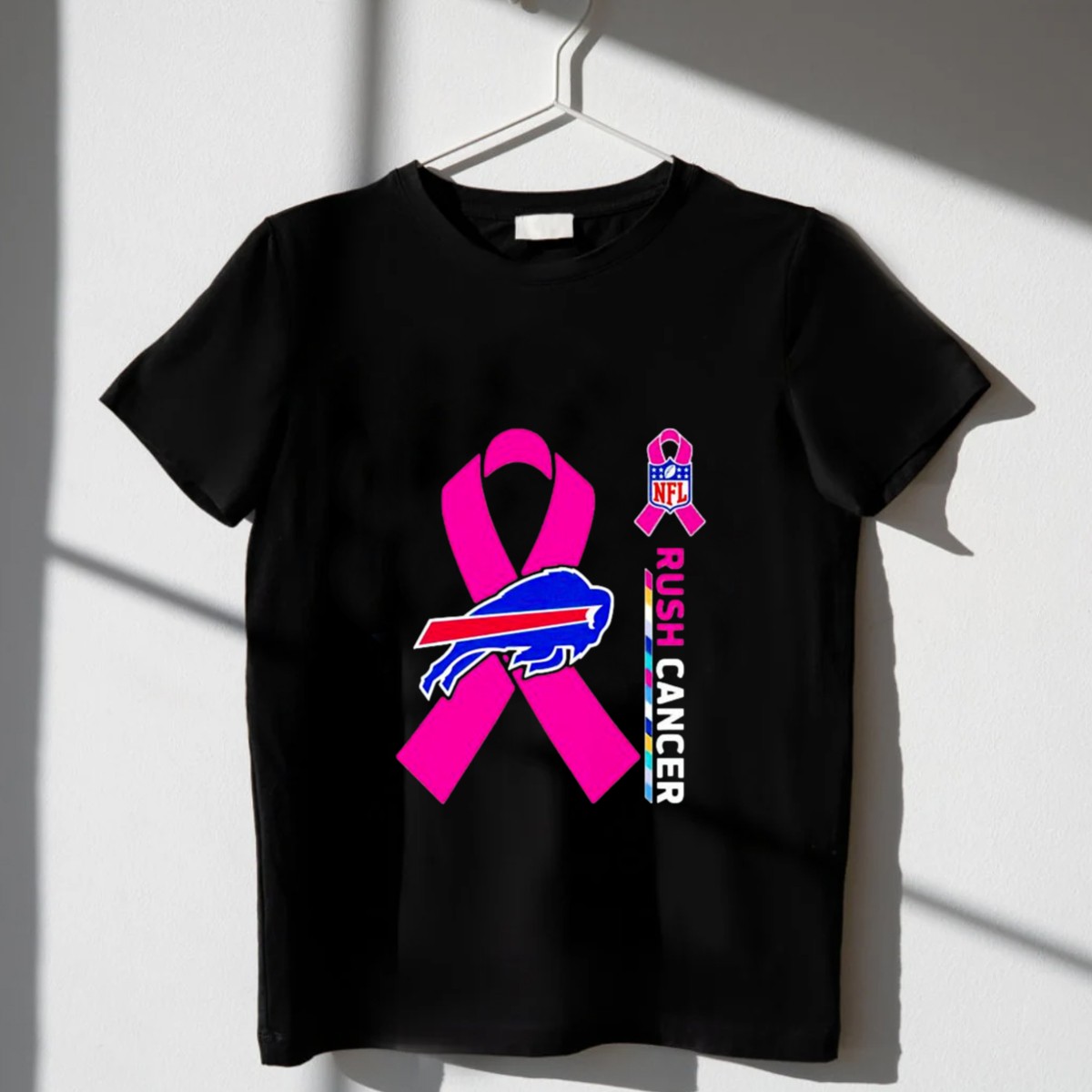 Show your support for a great cause with the Buffalo Bills NFL Rush Cancer Pink Ribbon T-Shirt. This fan-made design is perfect for die-hard Buffalo Bills fans who want to make a statement while promoting awareness for cancer research. Ideal for casual wear, themed events, or just daily outings, this shirt combines comfort with a powerful message, making it a must-have for any Bills supporter.
