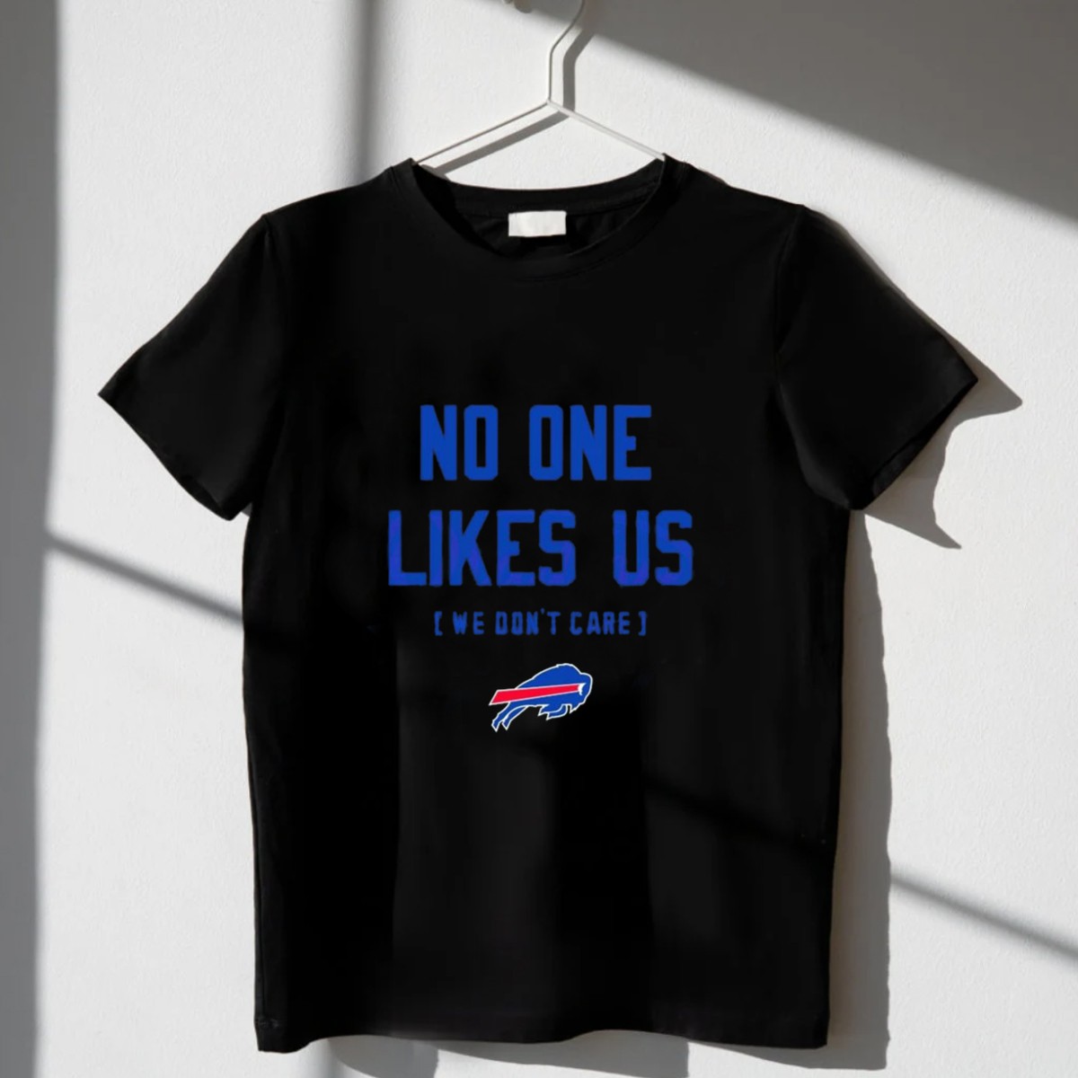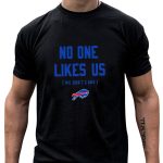 Show your unwavering support for the Buffalo Bills with our “No One Likes Us We Don’t Care” fan-made graphic T-shirt. Perfect for die-hard fans, this shirt is designed for casual wear, themed events, or just showing off your team spirit during game day. With its bold statement and comfortable fit, you’ll not only feel great but also let everyone know where your loyalty lies. Proudly printed in the USA, this T-shirt combines style, comfort, and team pride.