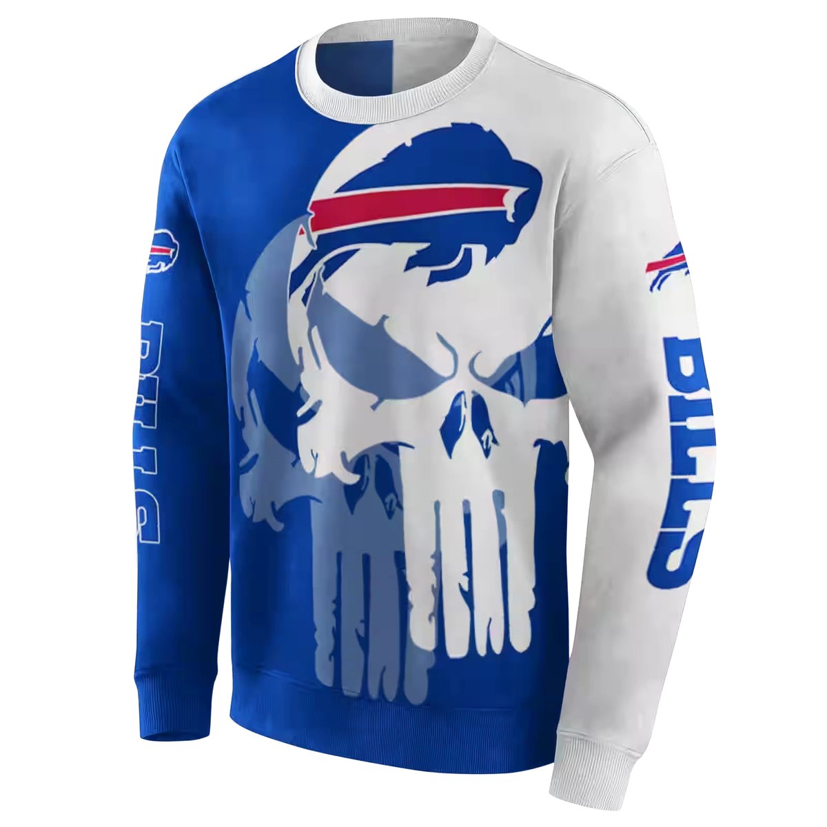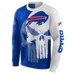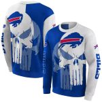 Unleash your inner fan with the Buffalo Bills Punisher Skull Blue White AOP Sweatshirt, designed for the die-hard supporter looking to make a bold statement. This sweatshirt is perfect for game days, casual outings, or simply lounging at home while showcasing your team spirit. Its unique all-over print combines style and comfort, making it a must-have addition to any streetwear collection.