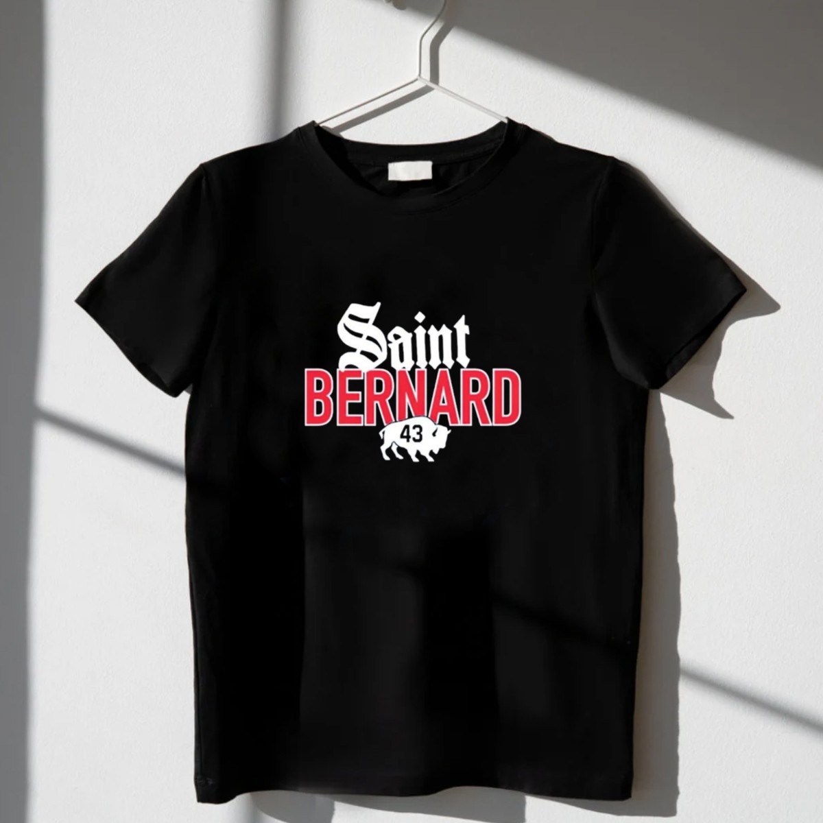 Show your love for the Buffalo Bills with this fan-made Saint Bernard 43 T-shirt, perfect for die-hard fans and dog lovers alike! Crafted for comfort and style, this classic fit tee is designed for casual outings, themed events, or simply lounging at home while cheering on your favorite team. Made in the USA, its unique design showcases your team spirit in a fun and playful way, making it an ideal addition to any Bills fan’s wardrobe.