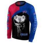 Show off your fierce team spirit with the Buffalo Bills Skull Punisher Red Black AOP Sweatshirt. Perfect for fans who want to make a bold statement, this sweatshirt is ideal for game days, casual outings, or cozy nights at home. Its unique all-over print blends style with comfort, making it a must-have for any streetwear enthusiast.