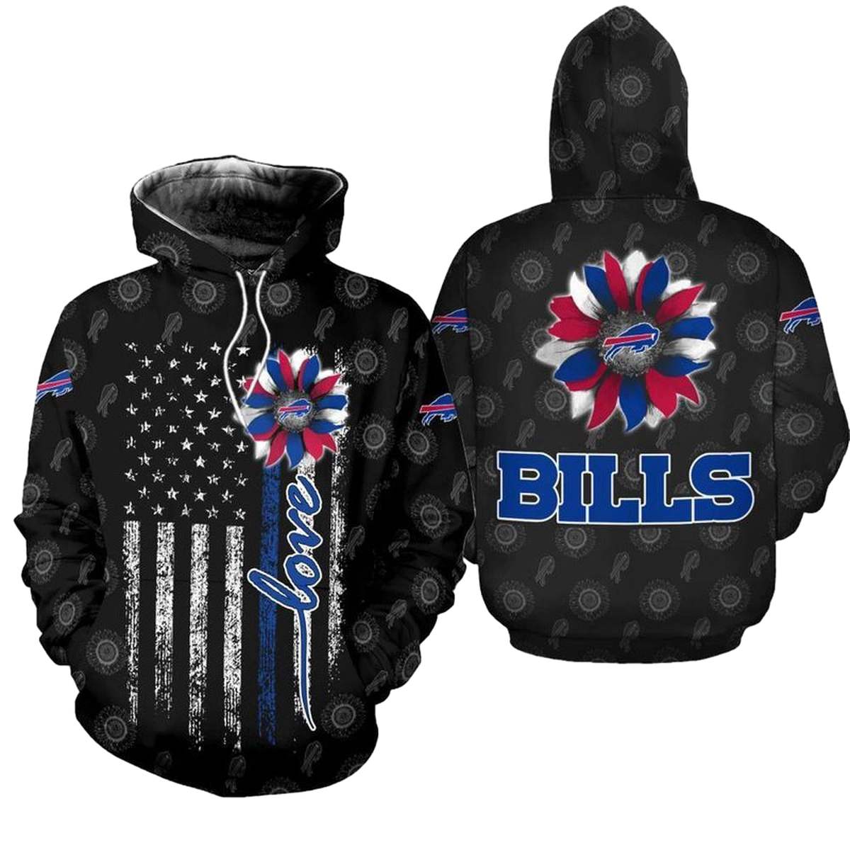 Embrace your passion for the Buffalo Bills with our striking Sunflower Flag All-Over Print Hoodie. Perfect for fans who want to showcase their team spirit while staying cozy, this hoodie is ideal for casual outings, game days, or simply lounging at home. Its unique design combines vibrant graphics with a relaxed fit, making it a standout piece in any wardrobe.