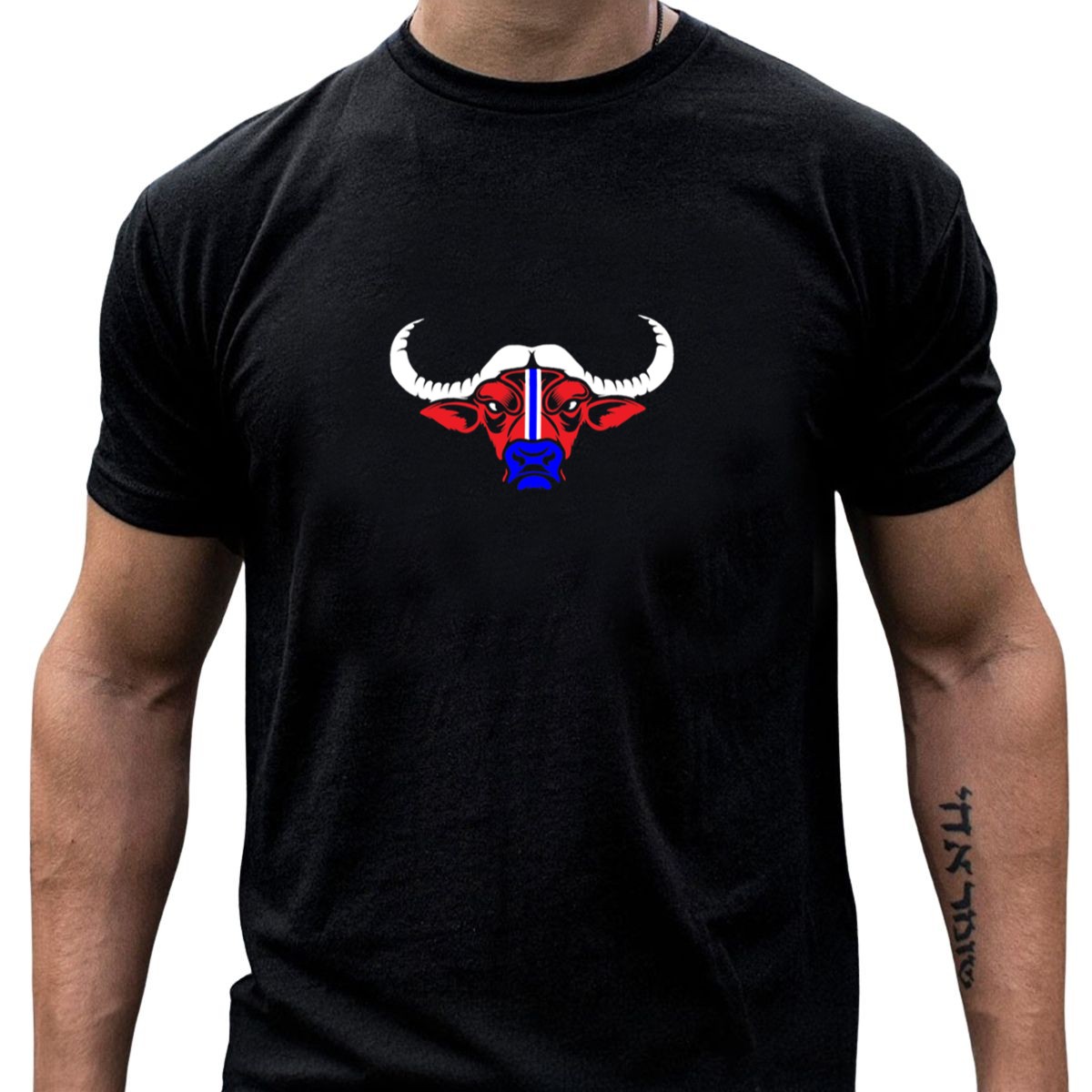 Show your team spirit with our Buffalo Bills Water Buffalo Mascot T-Shirt! Perfect for die-hard fans and casual wearers alike, this shirt celebrates the iconic mascot with a fun and vibrant design. Ideal for game days, themed events, or just hanging out with friends, this comfortable tee is a must-have for anyone who loves the excitement of football season. Made and printed in the USA, it combines a classic fit with a unique fan-made design, ensuring you stand out while supporting your favorite team.