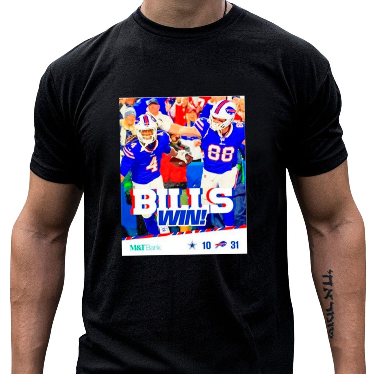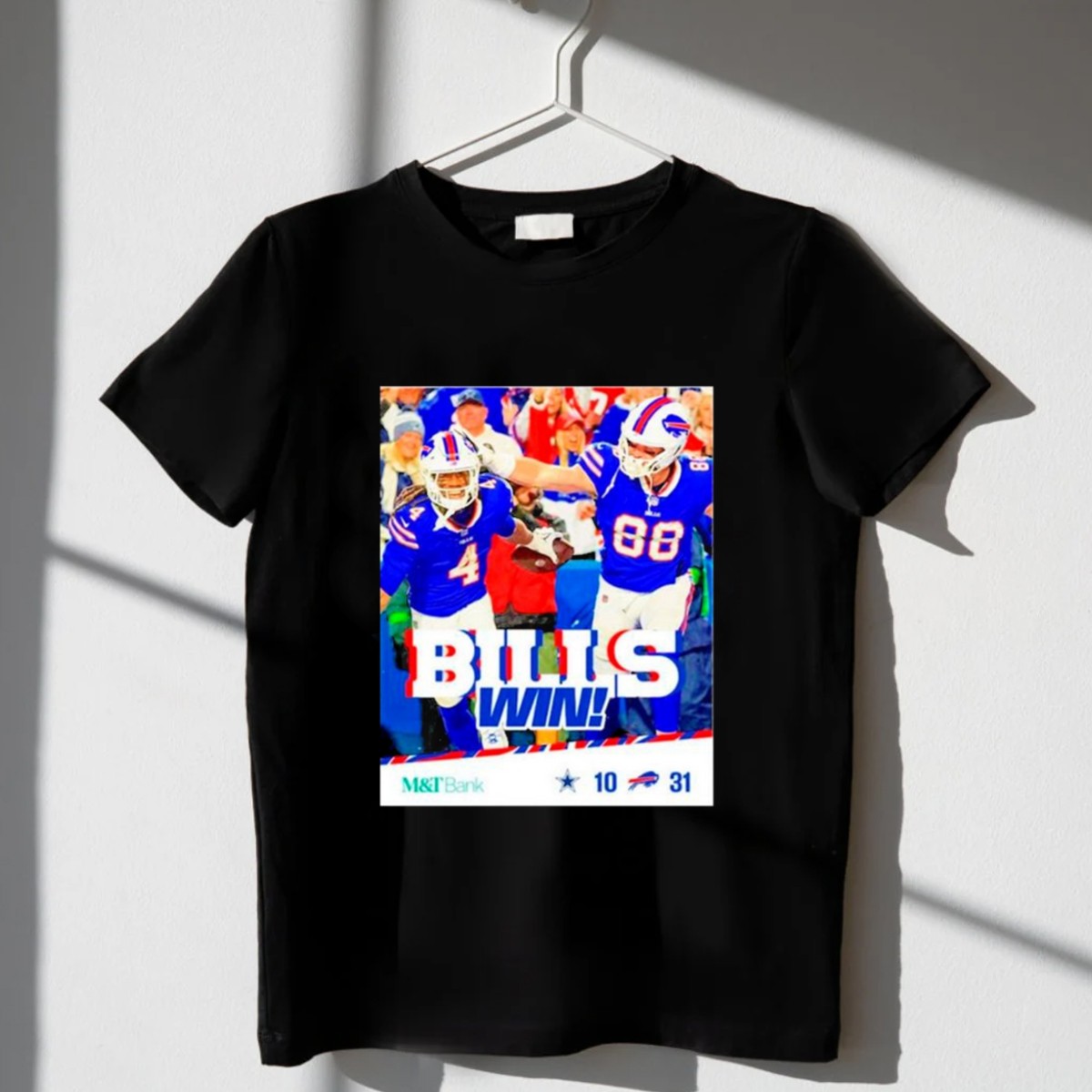 Show your team spirit with our Buffalo Bills Win Dallas Cowboys 31 10 T-Shirt, a perfect addition for any die-hard Bills fan! This fan-made design celebrates an epic victory and is ideal for casual outings, themed game events, or simply cheering from your couch. Made in the USA, this T-shirt combines comfort and style, making it a unique way to flaunt your loyalty while staying cozy!