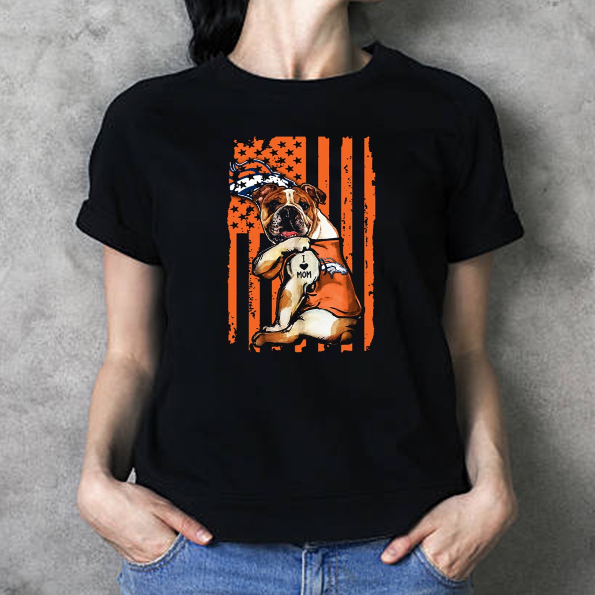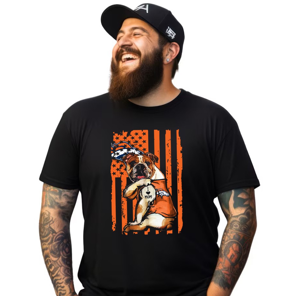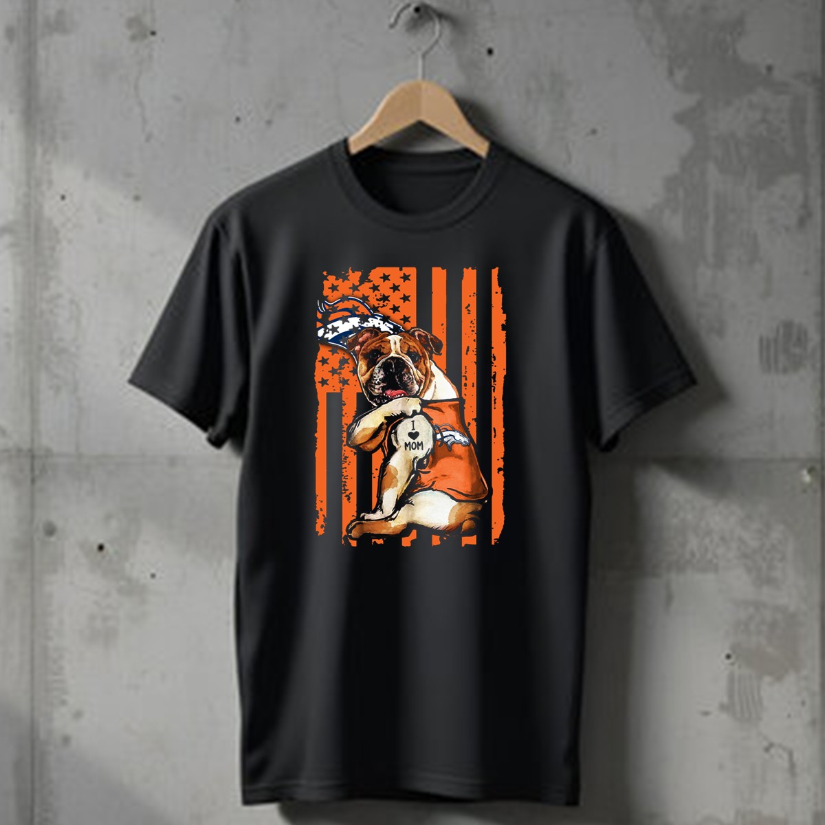 Show your love for your mom and your favorite football team with our Bulldog I Love Mom Denver Broncos Football Fan Flag T-Shirt! Perfect for dedicated fans and proud family members, this shirt is designed for casual wear, themed events, or just everyday outings. The unique fan-made design captures the spirit of the Denver Broncos while celebrating the special bond with your mom, making it a standout piece in any football fan’s wardrobe.