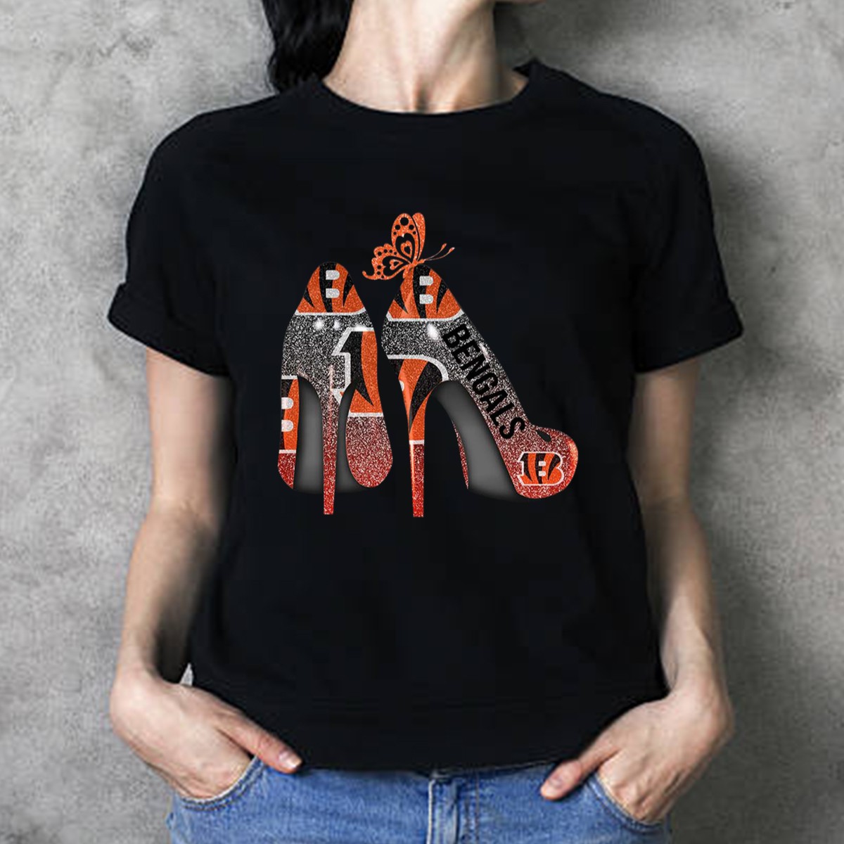 Show your love for the Cincinnati Bengals in a fun and stylish way with our Butterfly High Heels T-Shirt! This unique fan-made design captures the spirit of the game while adding a touch of flair, making it perfect for spirited fans and fashion-forward individuals alike. Whether you’re cheering from the stands, attending a themed event, or simply enjoying a casual day out, this t-shirt combines comfort and personality effortlessly!
