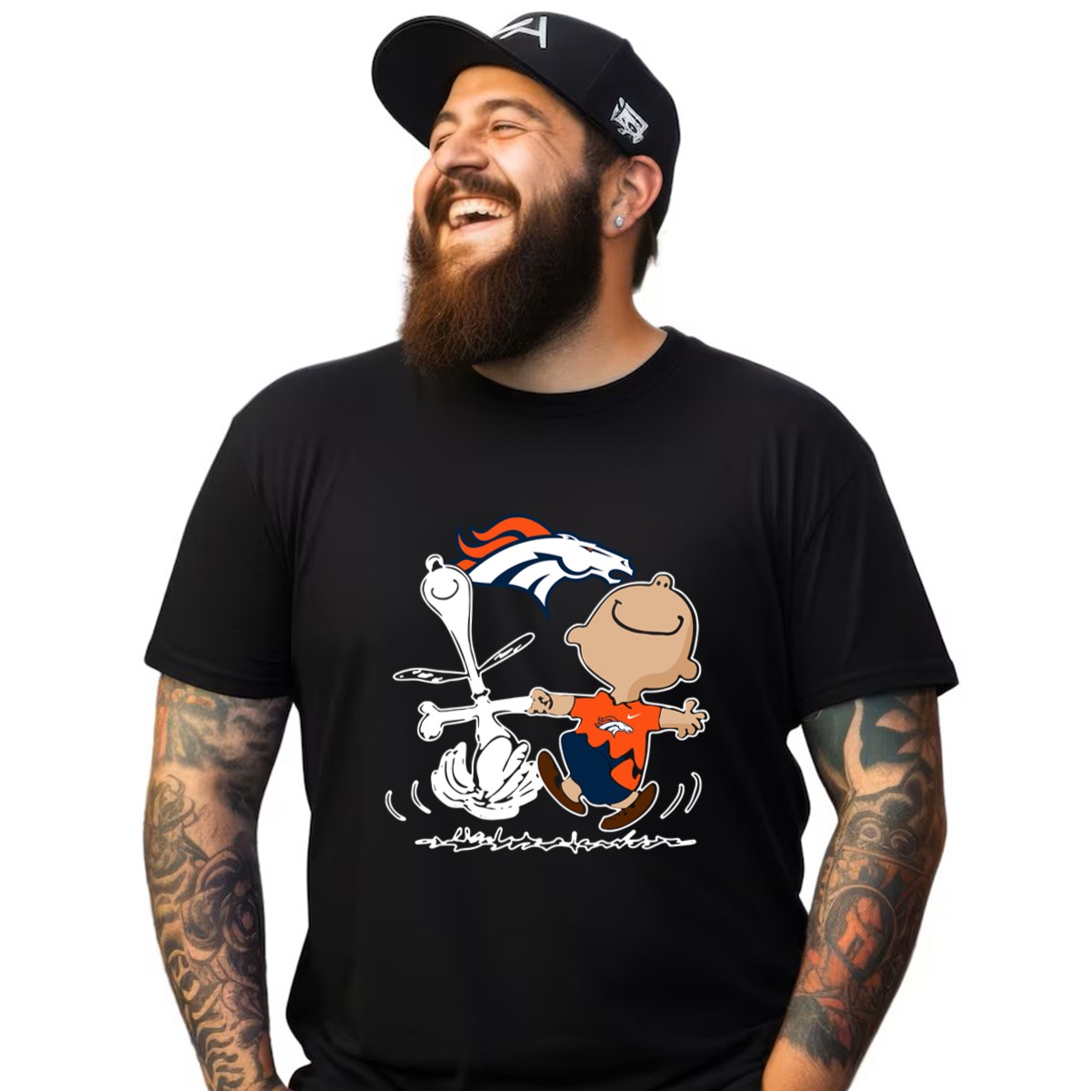 Show off your love for both the Denver Broncos and the iconic Peanuts characters with this Charlie Brown & Snoopy T-shirt! Perfect for fans of all ages, this shirt is designed for casual outings, themed events, or simply to express your team spirit in everyday life. The fan-made design is printed in the USA, ensuring quality and uniqueness that sets it apart from the rest.