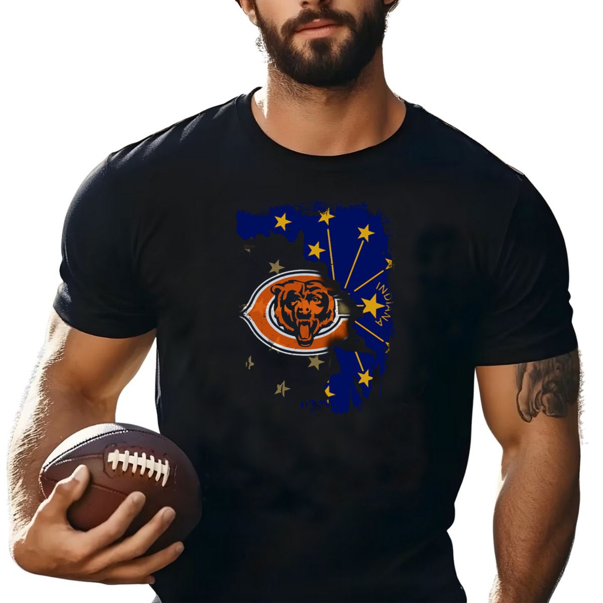 Show your pride for the Windy City and the Hoosier State with our Chicago Bears and Indiana State Flag Blend T-Shirt! This fan-made design is perfect for die-hard Chicago Bears enthusiasts and anyone who loves representing their Indiana roots. Whether you’re heading to a game, hanging out with friends, or enjoying a casual day out, this shirt is a standout piece that combines style and comfort, making it a must-have for every casual occasion.