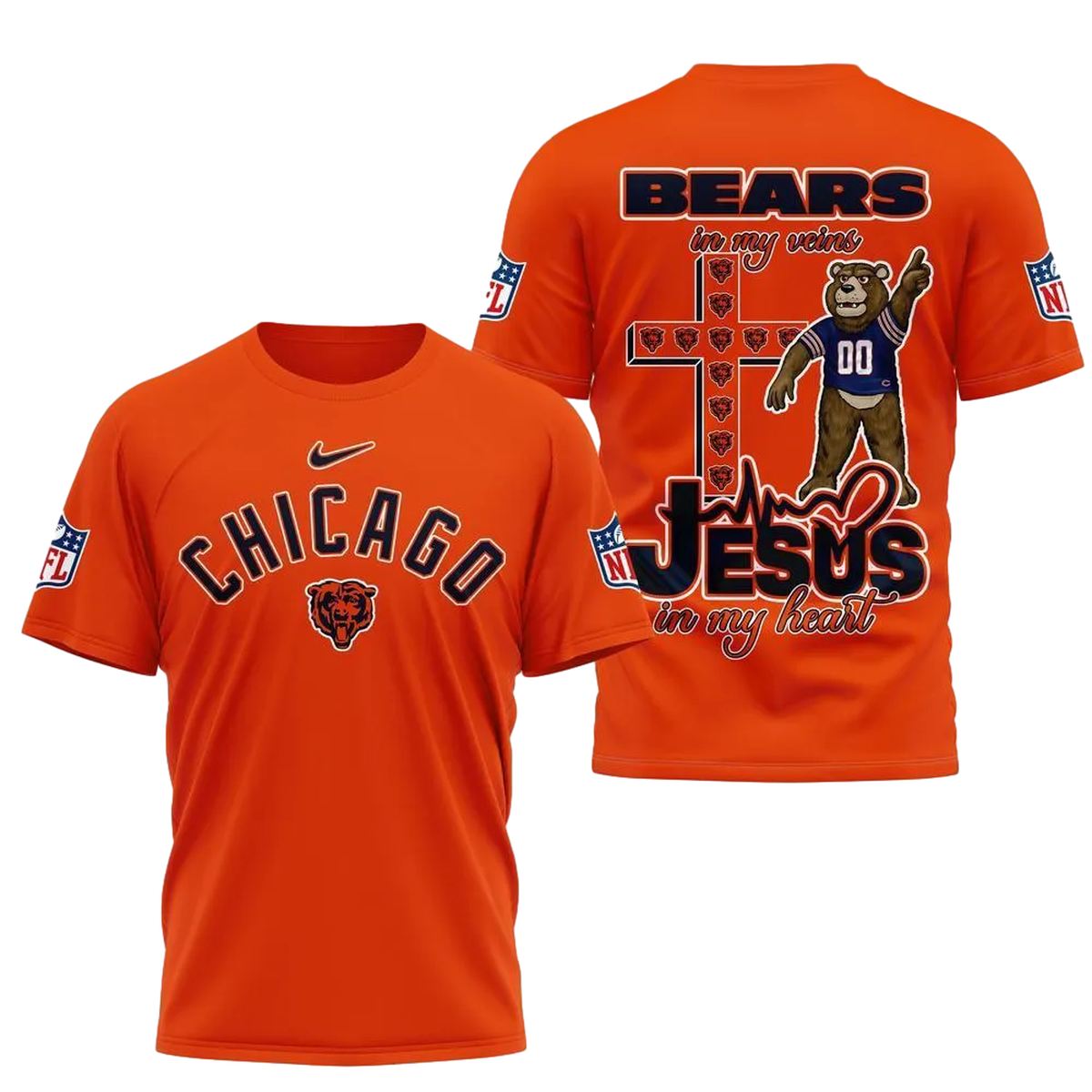 Chicago Bears And Jesus In My Heart AOP T Shirt