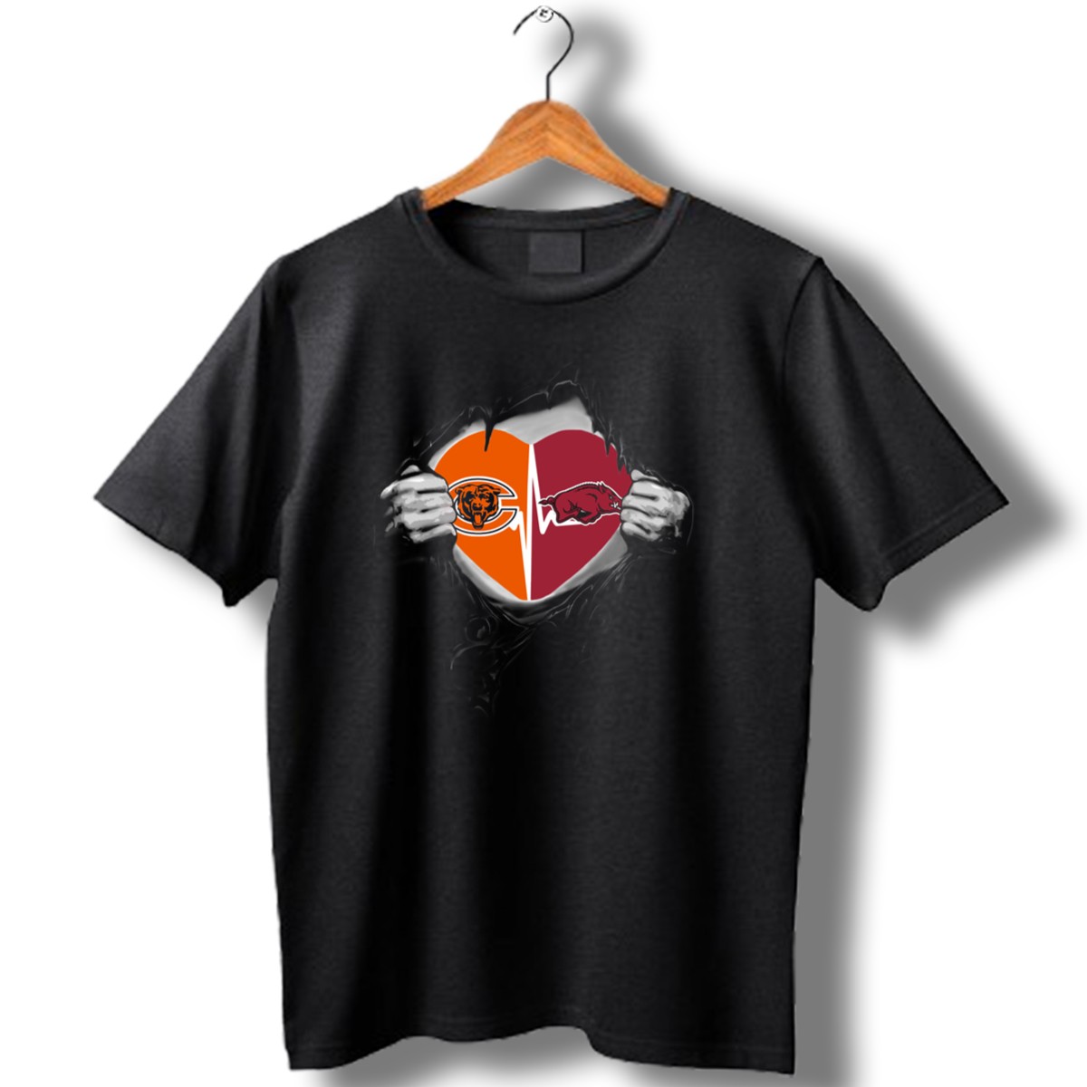 Show your love for both the Chicago Bears and the Arkansas Razorbacks with this uniquely designed fan-made T-shirt! Perfect for sports enthusiasts and casual wearers alike, this shirt combines two iconic logos, making it an ideal choice for game days, themed events, or just hanging out with friends. Crafted for comfort and style, this tee is a must-have for any fan looking to express their team spirit.