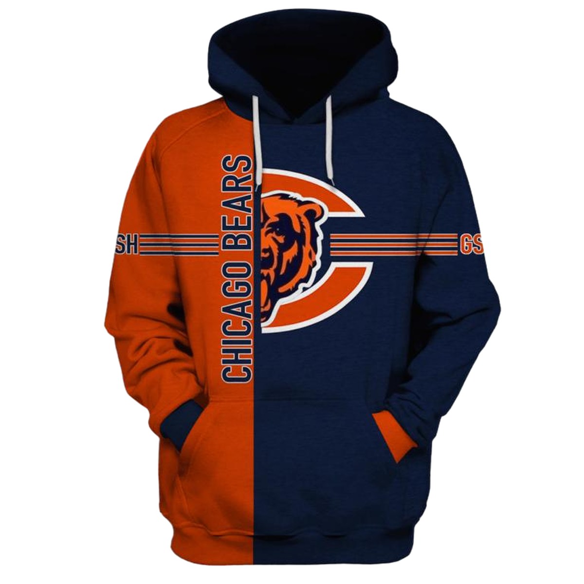 Show your team spirit with the Chicago Bears Big Logo Blue Orange All-Over Print Hoodie! Perfect for passionate fans, this hoodie blends comfort and style, making it ideal for game days, casual outings, or cozy nights in. Its unique design sets you apart while keeping you comfortable in cooler weather.