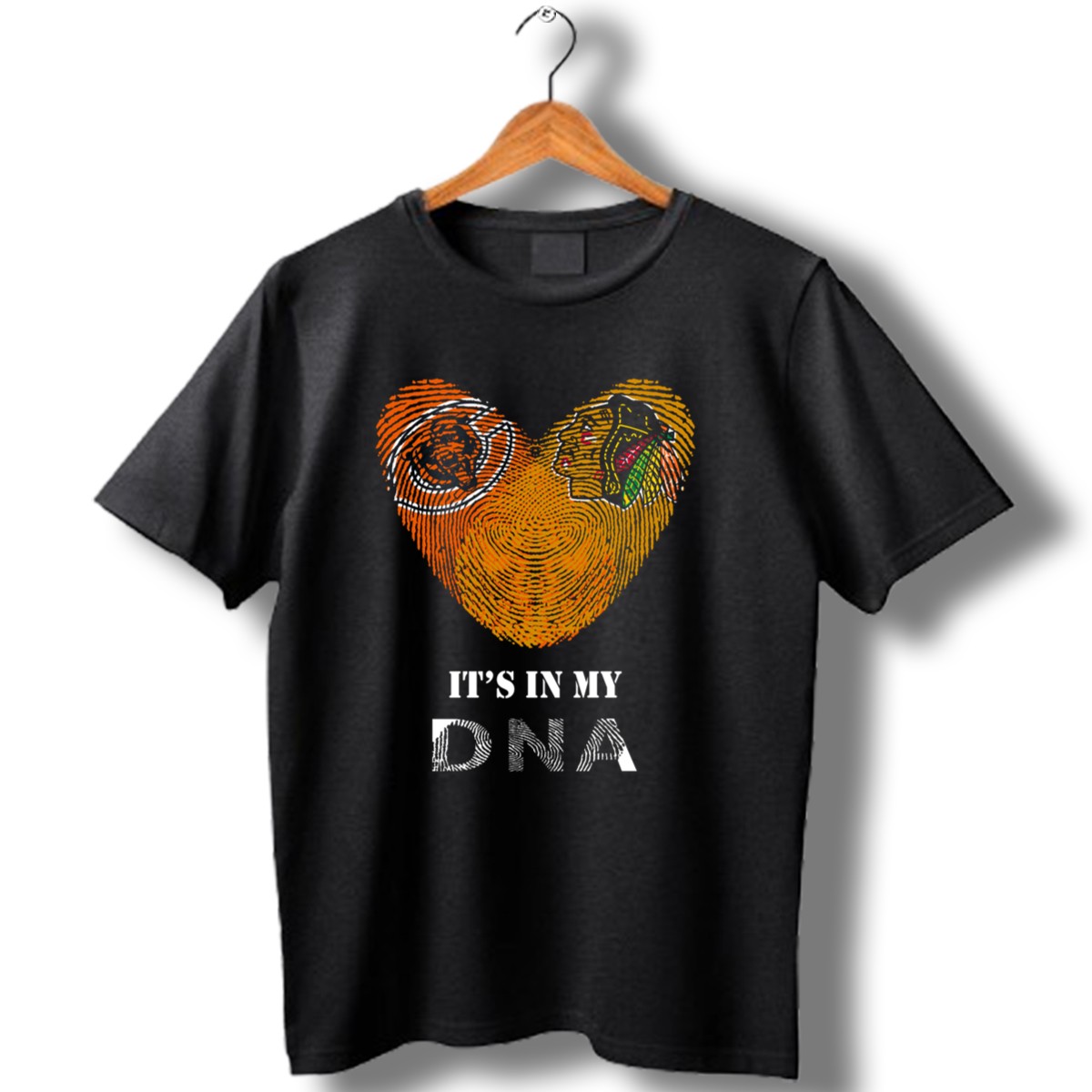 Show off your love for Chicago sports with our Chicago Bears Blackhawks “It’s In My DNA” T-Shirt! Perfect for die-hard fans and casual wear alike, this shirt celebrates your loyalty to two iconic teams. Whether you’re heading to a game, hanging out with friends, or just enjoying a relaxed day at home, this shirt will keep you looking stylish and feeling comfortable. The unique fan-made design, printed right here in the USA, makes it a standout addition to any sports enthusiast’s wardrobe.