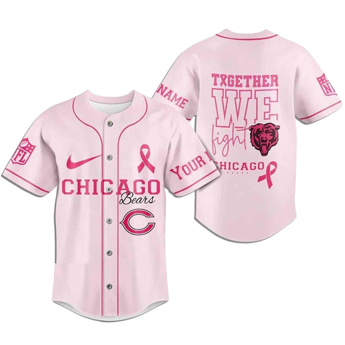 Show your support in style with our custom Chicago Bears Breast Cancer Pink Baseball Jersey. This jersey is perfect for game days, casual outings, or as part of a group uniform. Stand out while cheering for your team and raising awareness for a great cause!